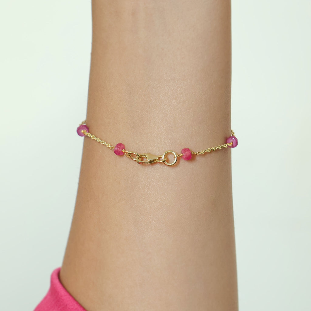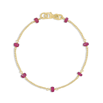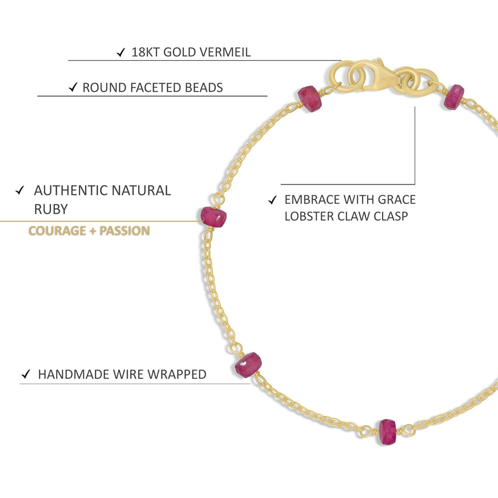 The authentic ruby beads used in this gorgeous bracelet are renowned for their rich red color and smooth, polished texture. Every ruby bead is expertly strung along a modern, 6-to 8-inch chain that can be adjusted, ensuring a precise and cozy fit for any wrist size. This bracelet is a classic piece of jewelry because of the deep red tones that arouse feelings of strength, love, and passion.