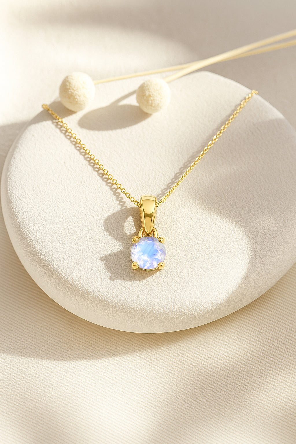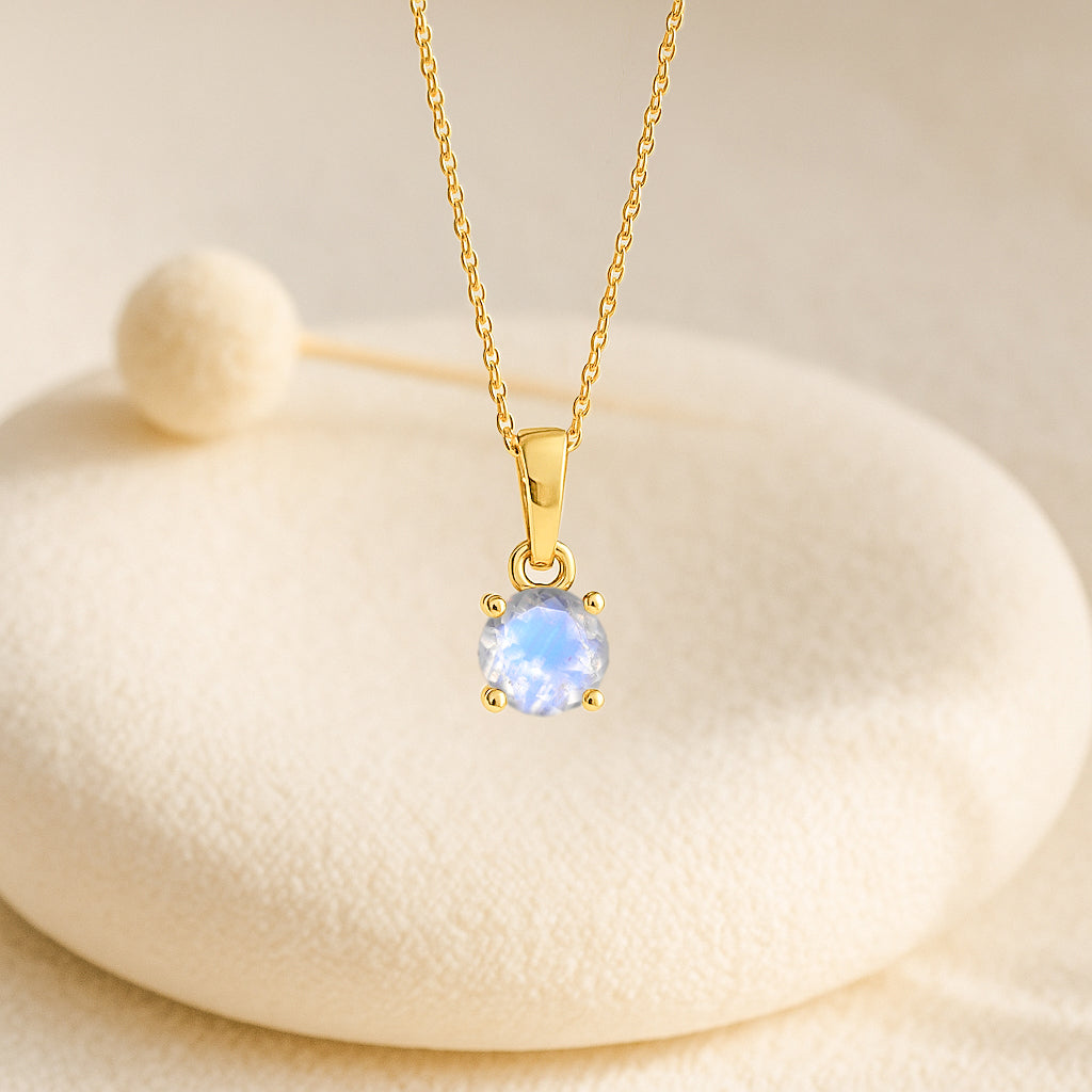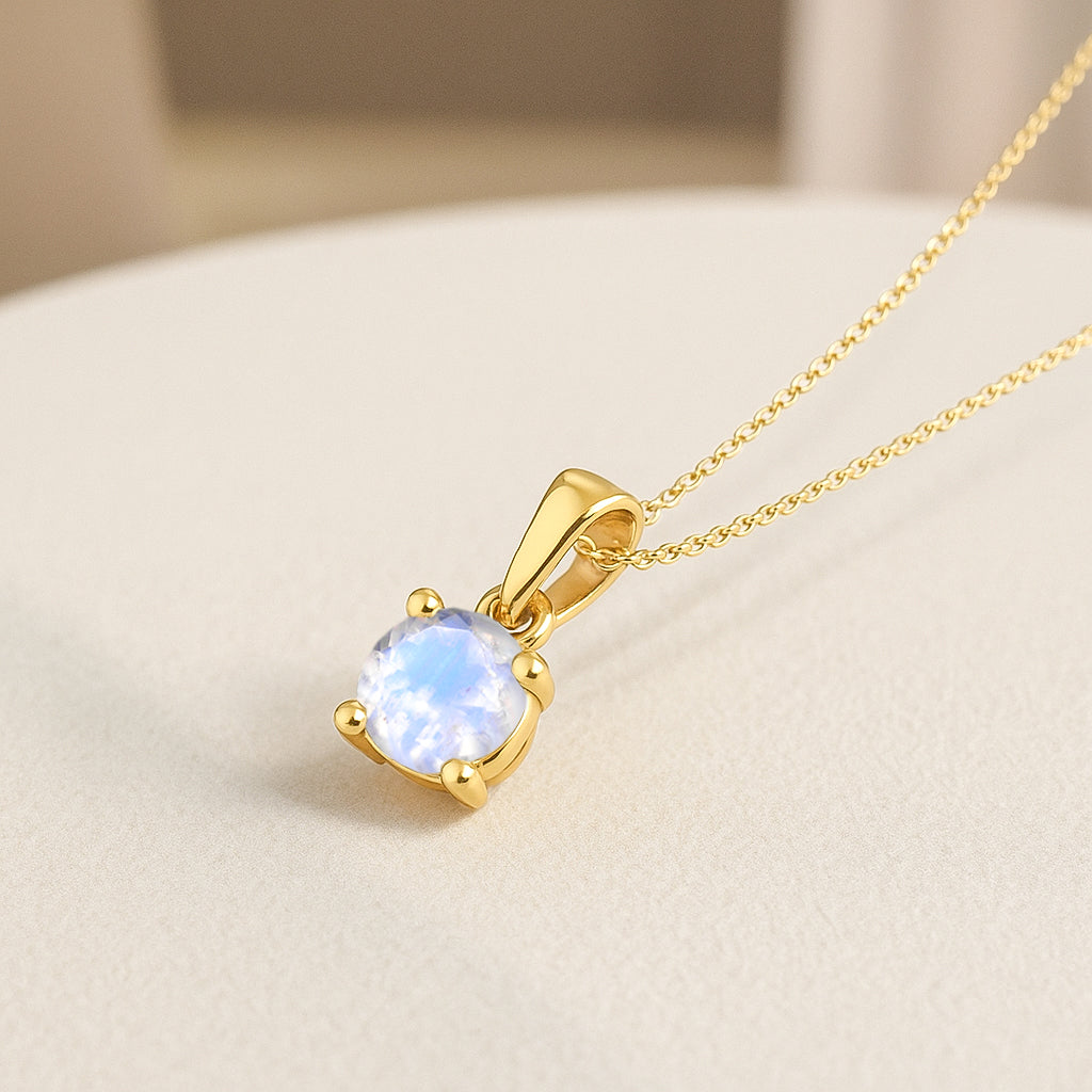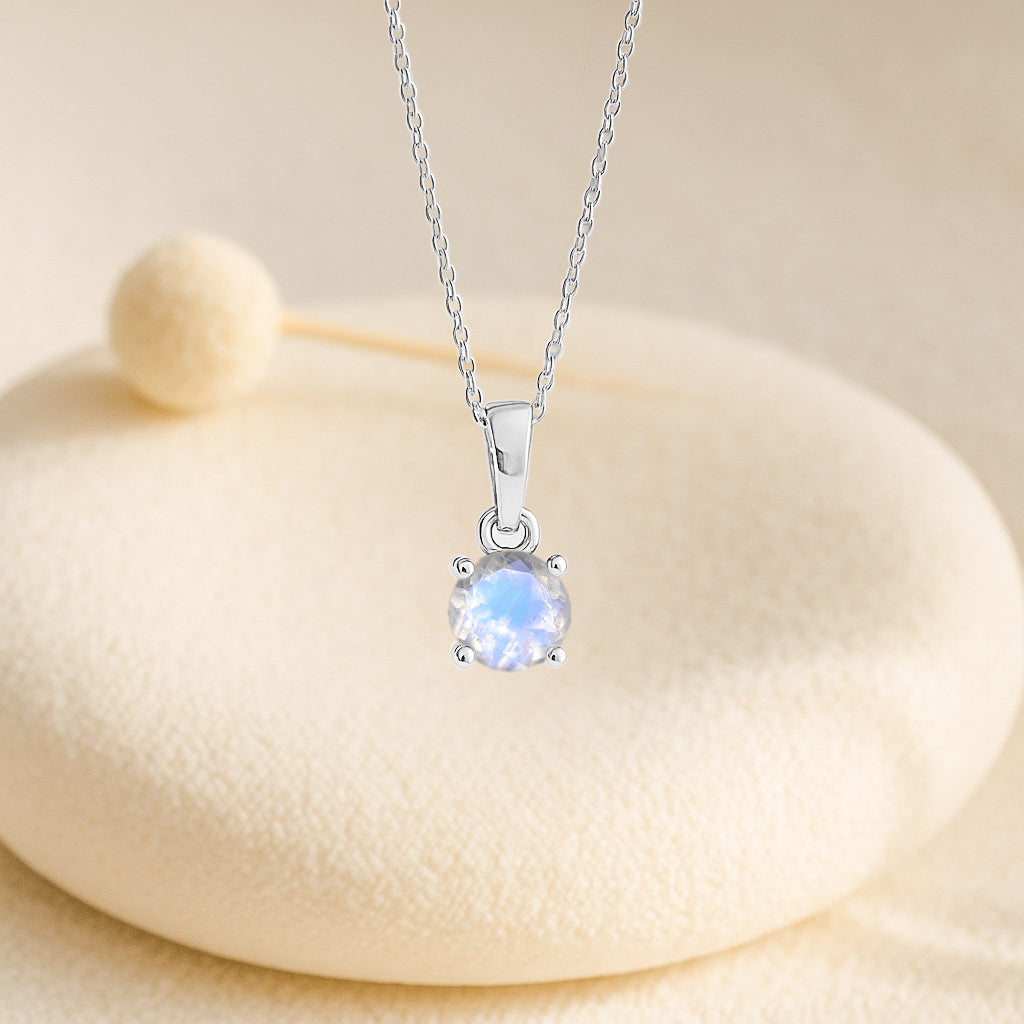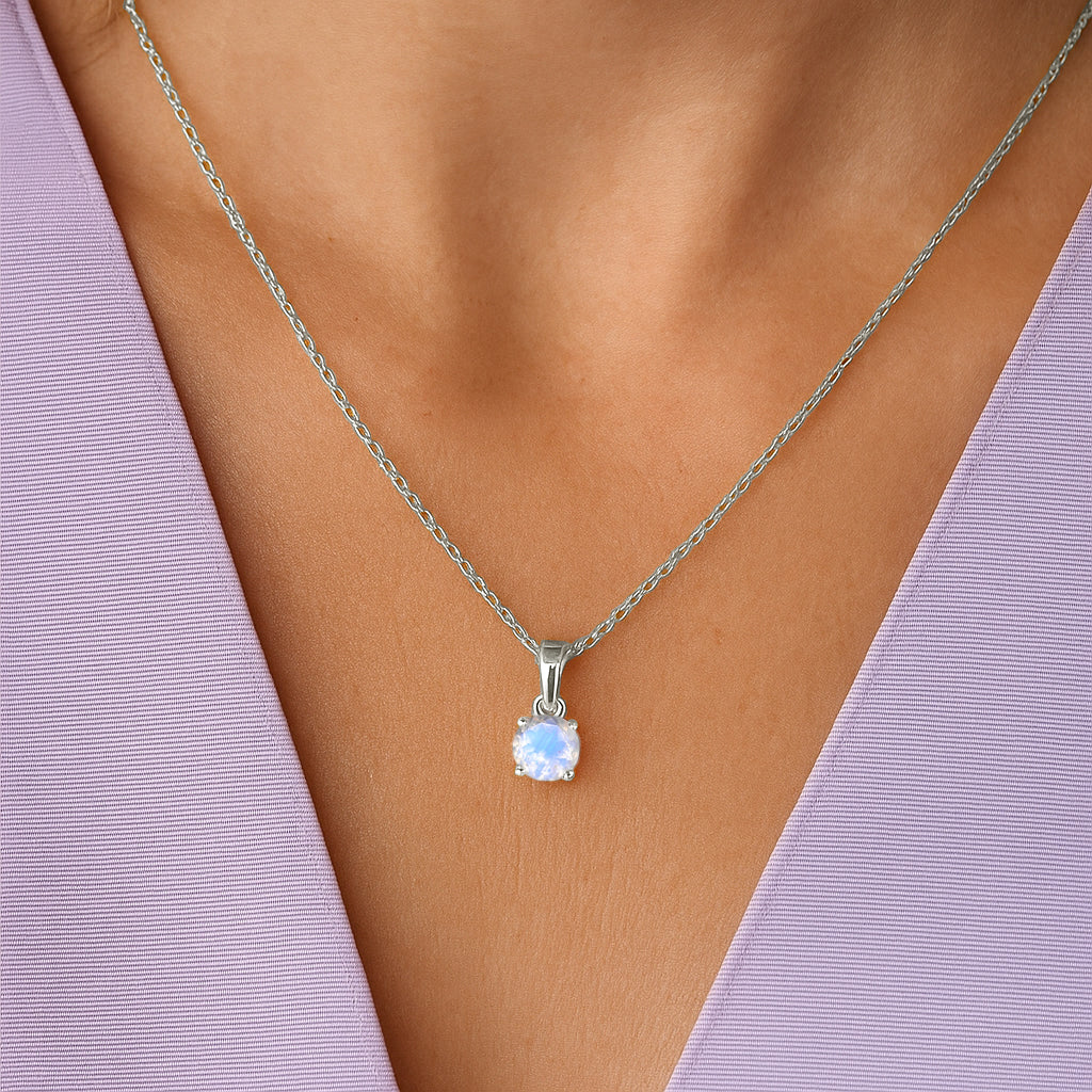 MoonstoneAdd timeless elegance to your look with this Natural Moonstone Round Teardrop Pendant Necklace, crafted in high quality 925 sterling silver. The pendant features a faceted 7 mm round moonstone weighing 1.2 carat, showcasing its signature iridescent glow. Measuring 15.60×7.00 mm, it hangs delicately from a 16″ + 2″ adjustable cable chain for a perfect fit. With a lightweight 1.60 g design, this necklace brings a soft, luminous charm to any outfit ideal for both everyday wear and special occasions.