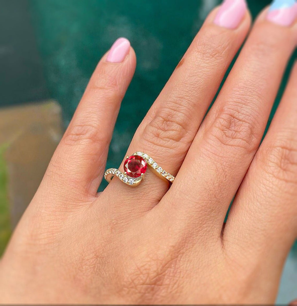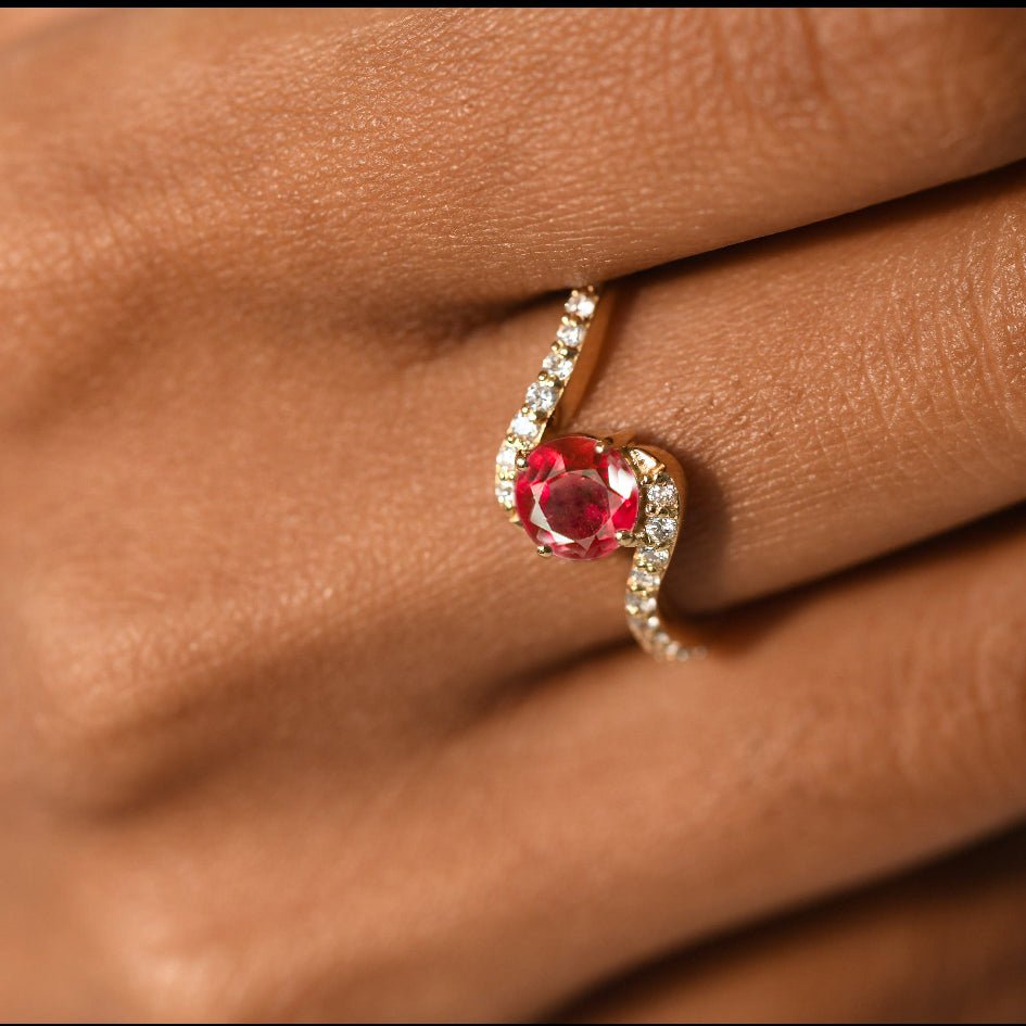 RubyAdd a touch of elegance to your jewelry collection with this exquisite Natural Ruby 925 Sterling Silver Bypass Ring. Featuring a 6MM round-cut Ruby weighing approximately 1.0 carat, this ring is a symbol of sophistication and grace. The gemstone is securely set in a sleek oval design and enhanced with a yellow gold-filled finish that brings out its rich, fiery hues. Handcrafted in premium 925 sterling silver, this ring offers both luxury and durability. Its size 9.65 MM fit and lightweight design (2.95 GM) ensure all-day comfort without compromising on bold style.