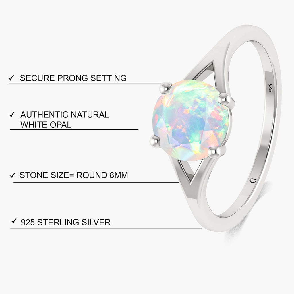 White OpalThis Natural White Opal 925 Sterling Silver Solitaire Wedding Ring for Women is beautifully finished in yellow gold-filled plating. At the heart of this stunning piece lies an 8 mm round faceted White opal, radiating vibrant flashes of color and light that captivate from every angle. White opal makes this ring a meaningful birthstone jewelry gift for her, ideal for anniversaries, weddings, or heartfelt promises. Expertly crafted from genuine 925 sterling silver, this ring provides a long-lasting shine and exceptional quality. Its stackable design allows you to pair it seamlessly with other rings, creating a stylish, personalized look.