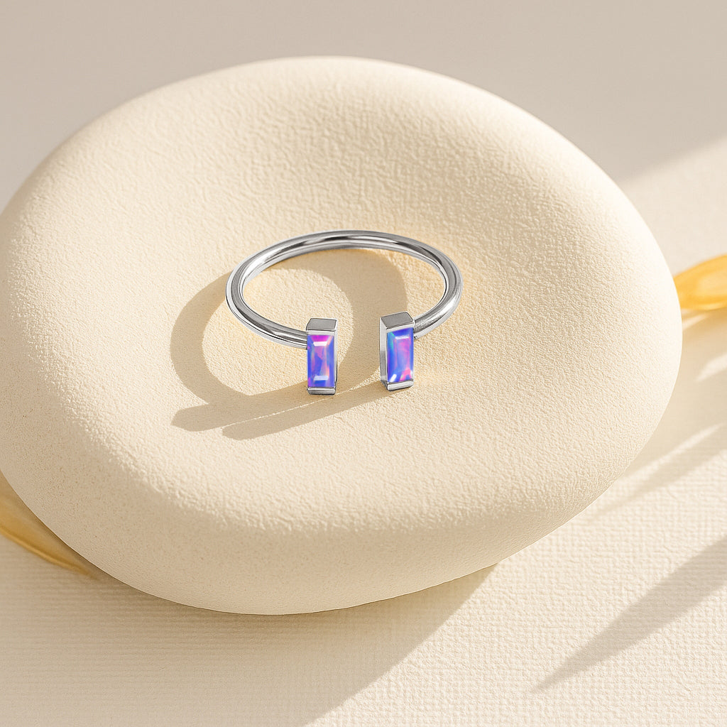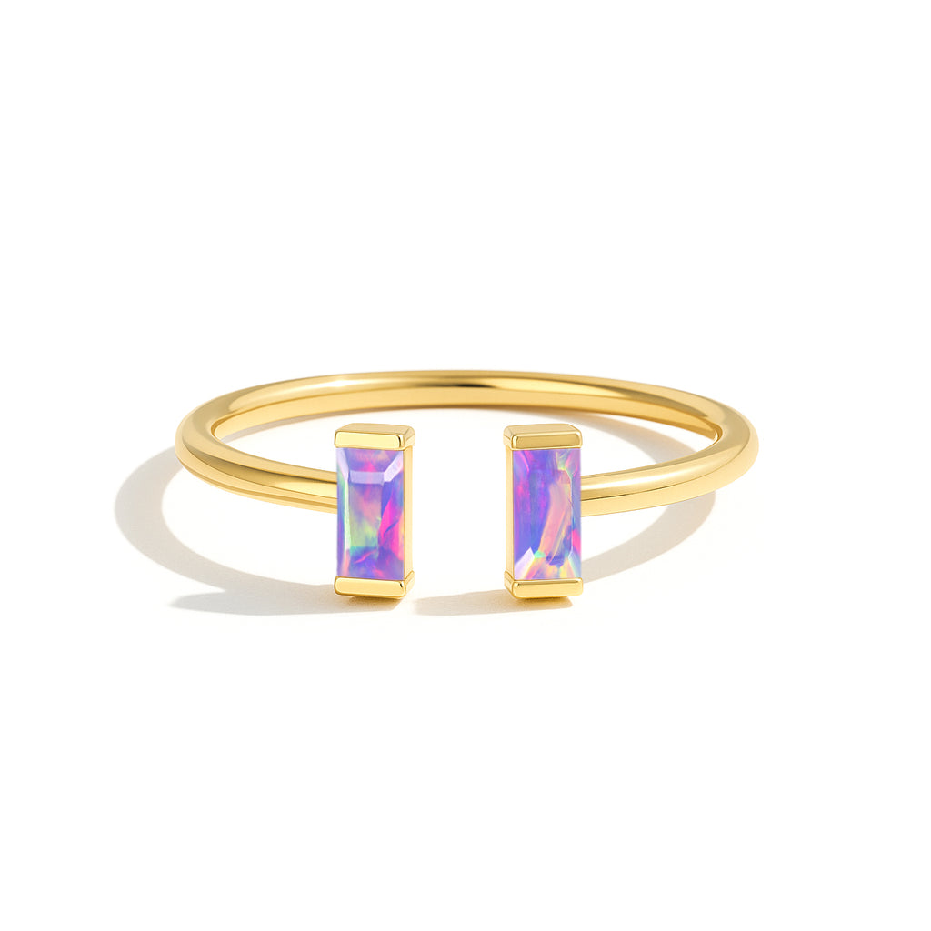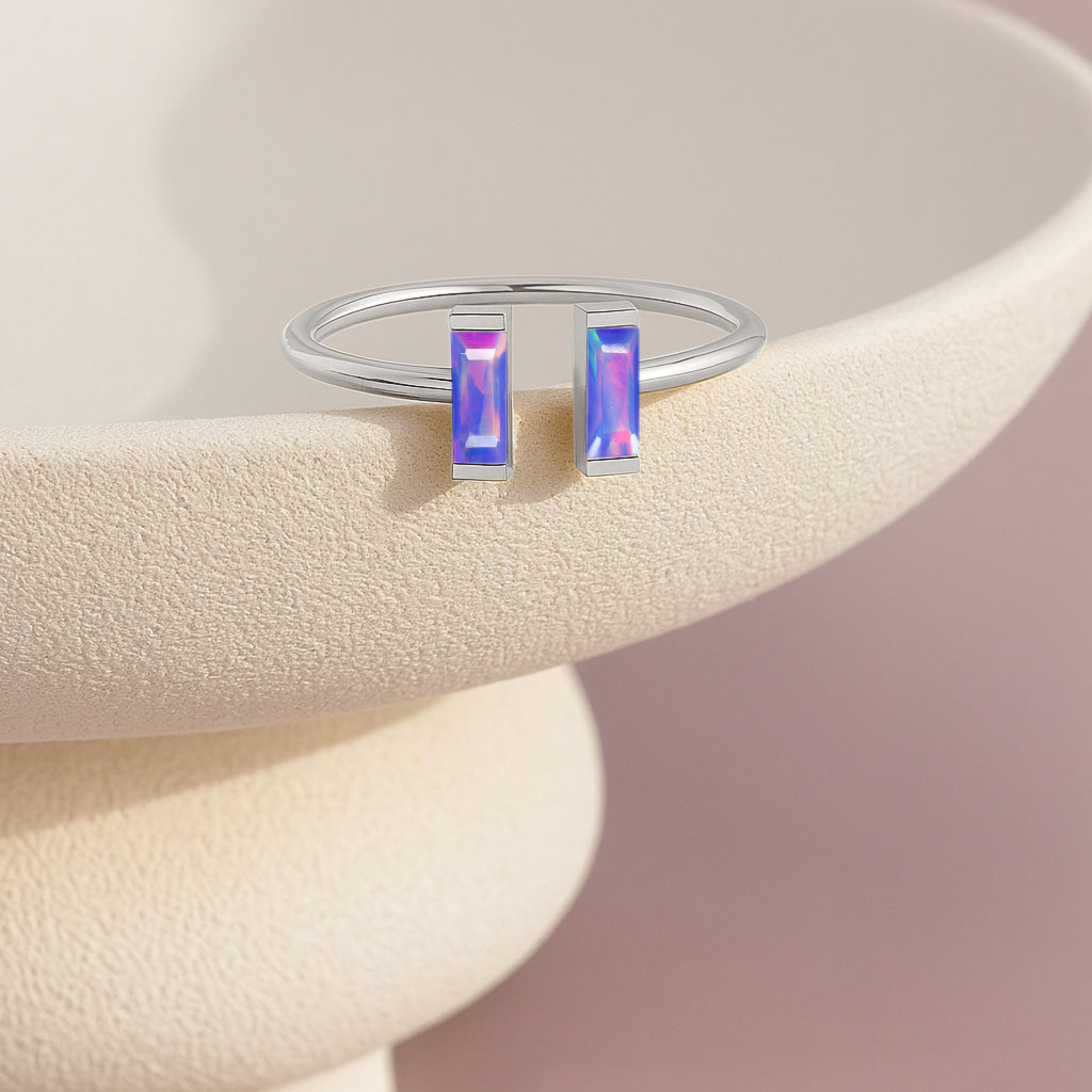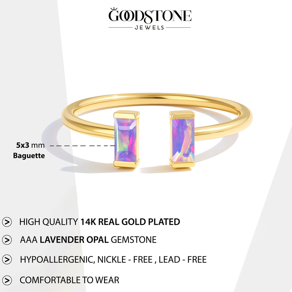 Lavender OpalElevate your everyday style with this elegant Baguette Stone Open Ring, crafted in high quality 925 sterling silver. The design features a natural lavender opal baguette stone measuring 5x2 mm, offering a vivid pop of red and a sleek modern silhouette. With a total gemstone weight of 0.50 carat and an approximate ring weight of 1.90 g, it delivers both comfort and luxury. The open-band style adds a contemporary touch, making it a perfect statement piece for any jewelry collection.