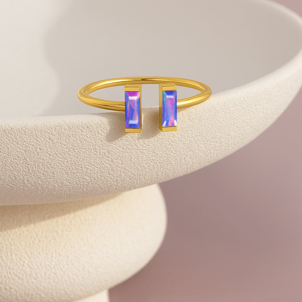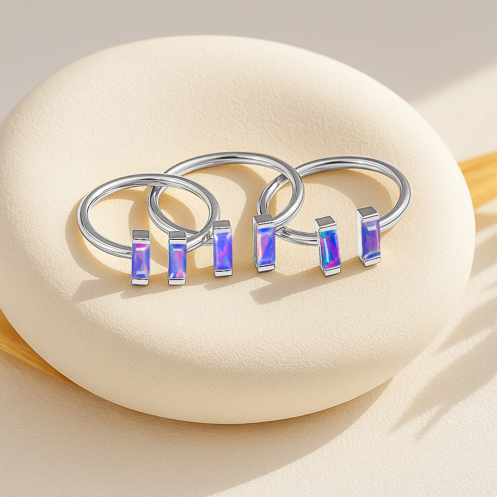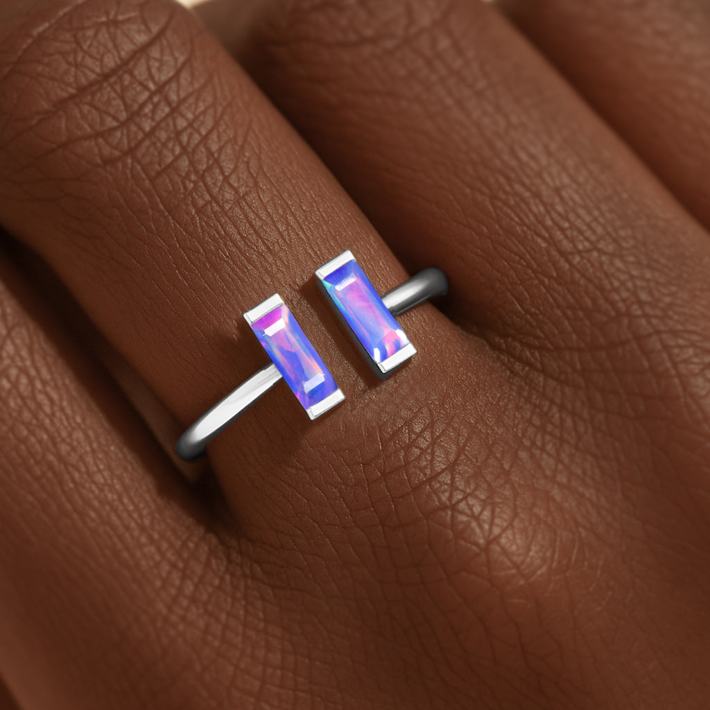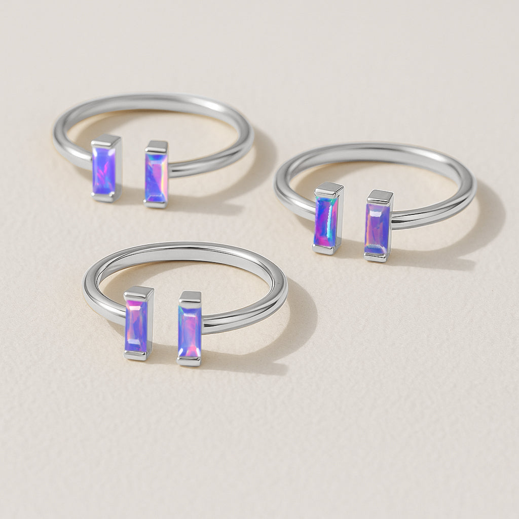 Lavender OpalElevate your everyday style with this elegant Baguette Stone Open Ring, crafted in high quality 925 sterling silver. The design features a natural lavender opal baguette stone measuring 5x2 mm, offering a vivid pop of red and a sleek modern silhouette. With a total gemstone weight of 0.50 carat and an approximate ring weight of 1.90 g, it delivers both comfort and luxury. The open-band style adds a contemporary touch, making it a perfect statement piece for any jewelry collection.
