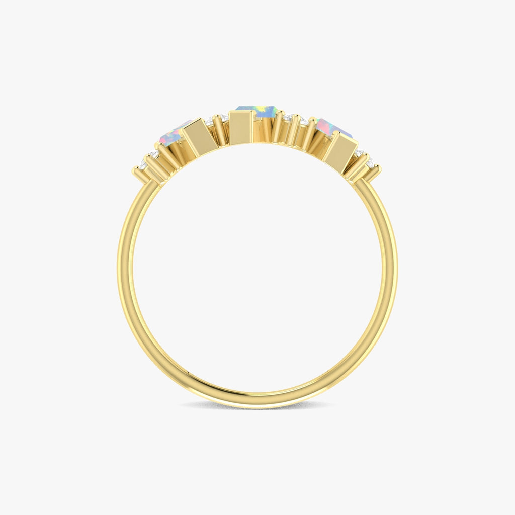 White OpalNatural White Opal 3-Stone Ring for women. Crafted in 925 sterling silver, this exquisite piece features three natural baguette-cut White Opals (4x2mm each), totaling approximately 1.2 carats. The White Opals' deep, mesmerizing hues and radiant flashes of color make this ring a true standout. This ring isn't just about beauty, it's about symbolism. The three-stone design represents the past, present, and future, making it the perfect choice for an anniversary, engagement, or a heartfelt promise ring for her.