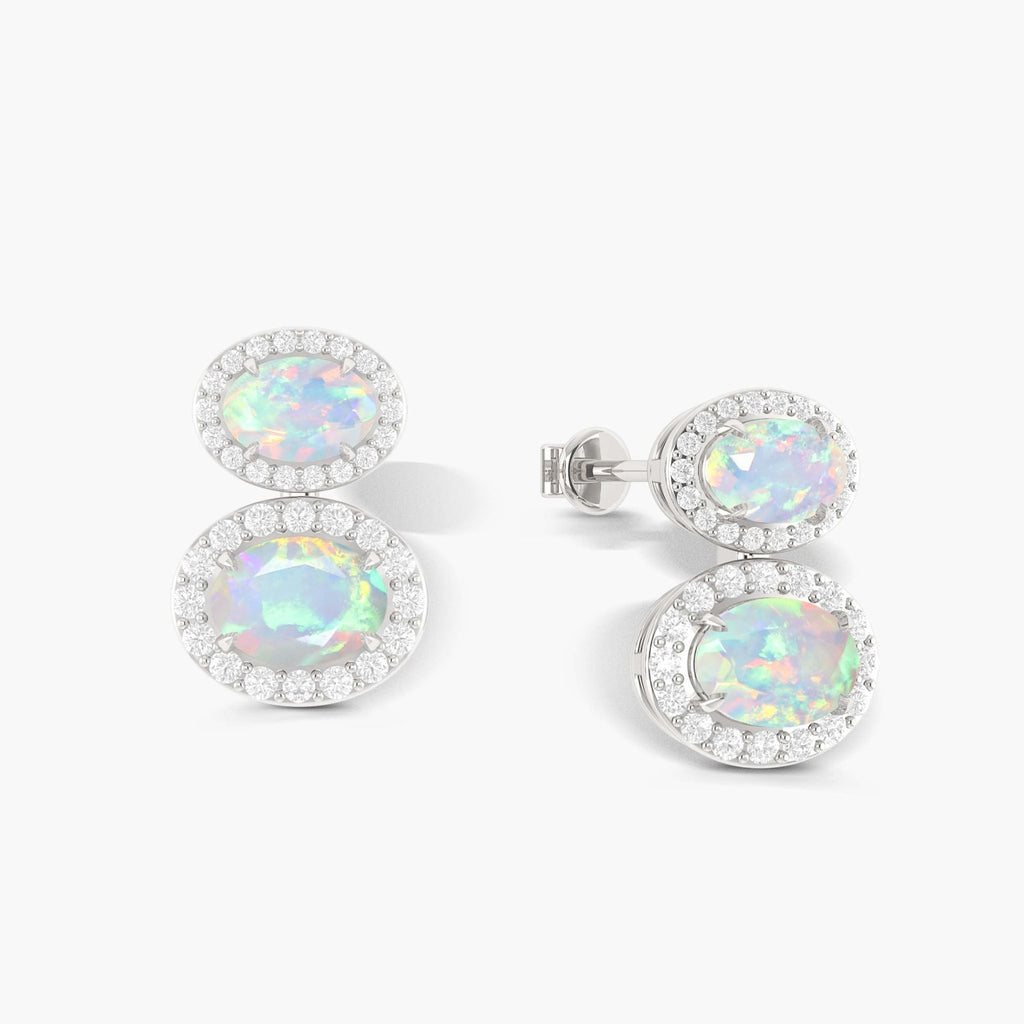 White OpalGOODSTONE JEWELS 925 Sterling Silver Dual Stone Stud Earrings : Elevate your jewelry collection with the exquisite craftsmanship of GOODSTONE JEWELS Dual Stone Stud Earrings, featuring a harmonious blend of natural opal. Made with genuine 925 sterling silver, these earrings offer a radiant, sophisticated look that never goes out of style. Designed with precision, each stud showcases oval-cut gemstones (7x5mm & 6x4mm) weighing a total of 2 carats, highlighting the vivid beauty of natural birthstones. Whether you're celebrating a birthday, anniversary, or simply showing appreciation, these earrings make a thoughtful gift for mothers, wives, girlfriends, or daughters.