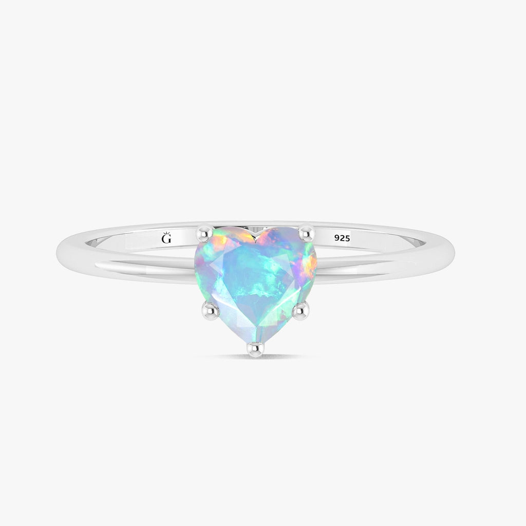 White OpalElevate your jewelry collection with this stunning Natural White Opal Heart Ring, masterfully crafted in 925 sterling silver and a luxurious yellow gold-filled finish. At the heart of this minimalist design is a captivating 6mm faceted White Opal, shaped into a delicate heart and weighing approximately 0.8 carats. Its dazzling play of color makes each ring truly one-of-a-kind, reflecting both beauty and individuality. Designed with a sleek and stackable silhouette, this ring can be worn solo for understated elegance or layered with your favorite pieces for a personalized, fashion-forward look. Whether you're dressing up for an event or accenting your everyday outfit, this ring is the perfect finishing touch.