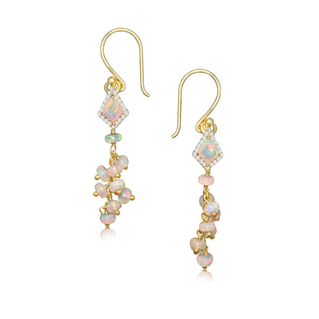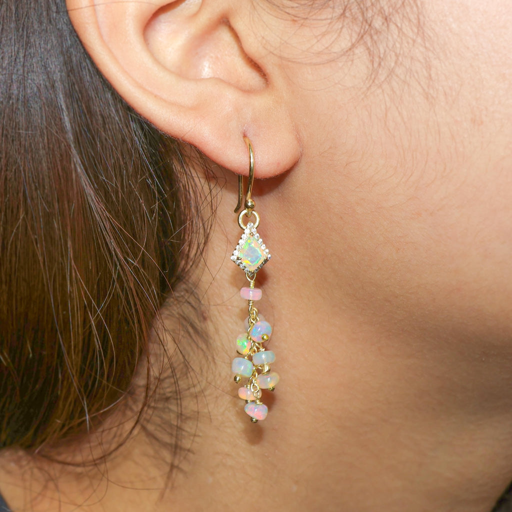 White OpalNatural White Opal Charm Beaded Cluster Earrings for Women. Designed to captivate, each earring features natural white opal beads arranged in a delicate cluster, glowing with soft, iridescent hues that catch the light with every movement. Crafted from premium 925 sterling silver and finished with yellow gold fill, these earrings blend quality craftsmanship with luxurious style. More than just a beautiful piece, these earrings make a thoughtful gift for the women who matter most—whether it's your mother, sister, wife, or best friend. Ideal for birthdays, holidays, anniversaries, or simply as a gesture of love, they come beautifully packaged and ready to impress.
