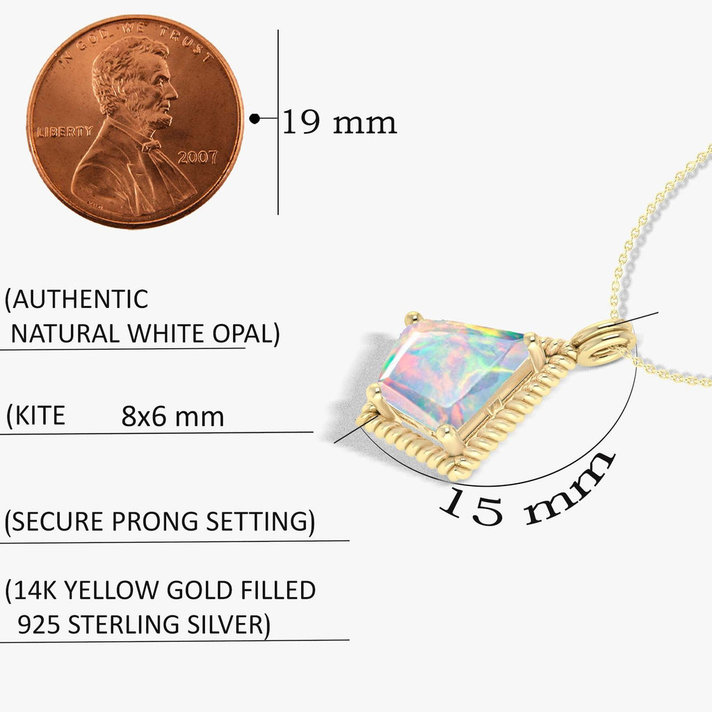 White OpalGOODSTONE JEWELS Kite Pendant Necklace a sophisticated accessory handcrafted in 925 sterling silver and finished with radiant yellow gold fill. Designed for women who appreciate fine craftsmanship and unique gemstones, this pendant features a captivating 1.0 carat natural white opal in a rare kite cut, making it a stunning focal point of any outfit. The deep hues and play-of-color within the white opal reflect individuality and mystery, ideal for October birthdays or anyone drawn to the opal's mystical charm. Suspended from a delicate 16-inch cable chain with a 2-inch extender, the necklace offers a comfortable, adjustable fit that complements all necklines and styles from casual daywear to elegant evening attire.