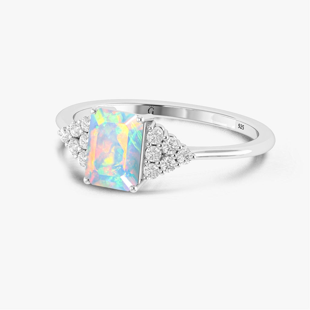 White OpalThis stunning Natural White Opal Solitaire Ring is beautifully crafted in 925 Sterling Silver and finished with rich Yellow Gold plating. At the heart of this ring lies a 7x5 mm octagon-faceted White Opal, weighing approximately 0.6 carats, a rare gemstone known for its deep, enchanting play of colors. This ring is more than just jewelry it's a symbol of love, strength, and elegance. Whether you're celebrating an anniversary, making an engagement promise, or simply searching for the perfect gift for her, this piece is designed to make a lasting impression.