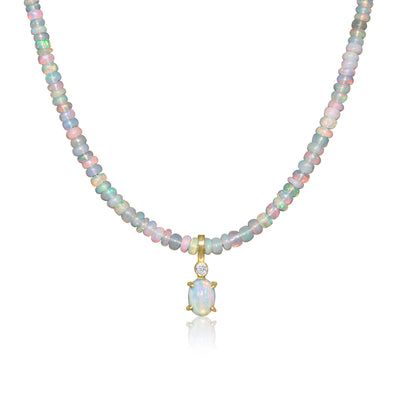 Natural White Opal Oval Shape with Zircon Beaded Necklace