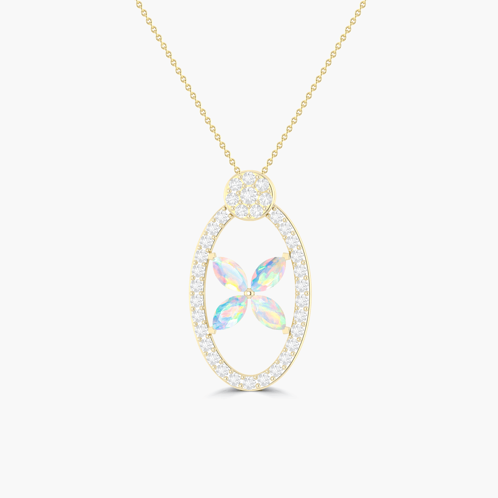White OpalGOODSTONE JEWELS OX Chain Pendant Necklace, a perfect blend of luxury, craftsmanship, and natural beauty. Meticulously handcrafted in 925 sterling silver for a radiant, tarnish-resistant finish, this pendant necklace showcases four stunning natural White opal gemstones in a unique marquise cut each measuring 5x2.5mm, totaling 1.0 carat. The pendant itself is designed with attention to detail, measuring 24.60 x 13.5 mm, and suspended from a delicate yet durable 16-inch cable chain, complete with a 2-inch extender for adjustable length. With a total weight of just 2.40 grams, it offers comfortable wear all day, making it ideal for both everyday elegance and special occasions. Each opal displays its own unique play-of-color, ensuring no two necklaces are exactly alike adding a deeply personal touch to your accessory collection.