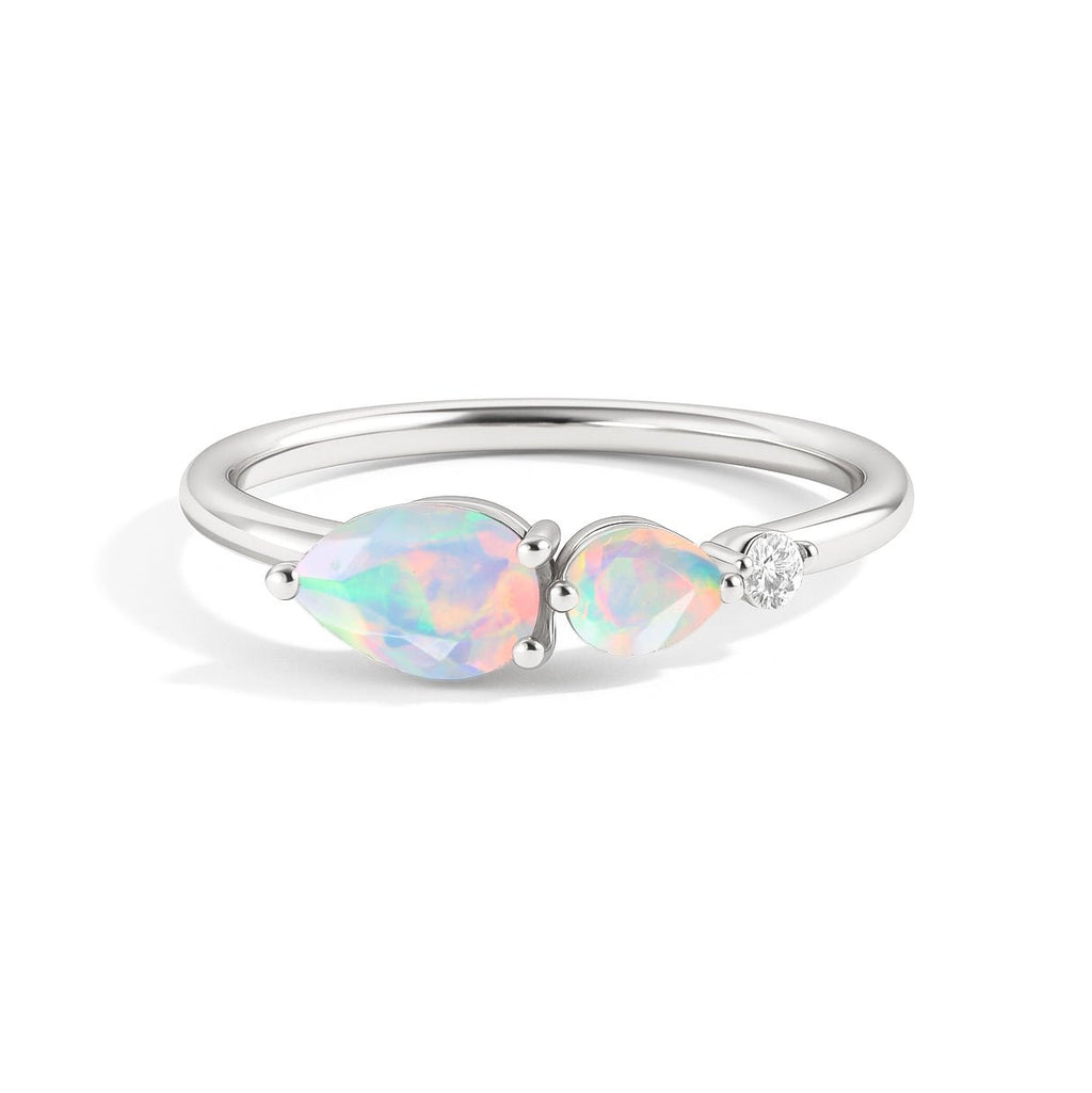White OpalNatural White Opal Two Stone Ring, a perfect blend of elegance, symbolism, and everyday versatility. Featuring a genuine 6x4 mm pear-cut White Opal gemstone weighing 0.5 carats, this ring dazzles with its mysterious iridescent hues, ideal for those born in October or anyone who adores rare, luminous stones. Expertly crafted from 925 sterling silver, this ring offers both luxury and durability. The hypoallergenic and nickel-free design ensures it’s safe and comfortable for all-day wear. Whether worn alone or stacked with other rings, its sleek profile adds a touch of sophistication to any look from casual outfits to formal attire.