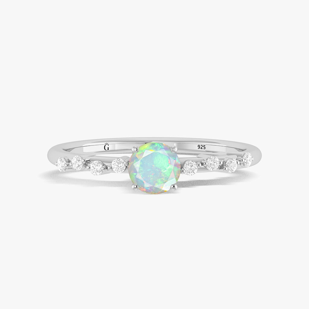 White OpalElevate your jewelry collection with this stunning Natural White Opal Ring, beautifully crafted in 925 Sterling Silver for a radiant glow. Featuring a captivating 5mm round White Opal gemstone, this ring is the perfect blend of minimalism and sophistication. Whether you're searching for a thoughtful gift for her or a unique piece to mark a special occasion, this ring delivers elegance in every detail. Ideal for birthdays, anniversaries, engagements, or wedding ceremonies, the White Opal's natural iridescence makes it a striking symbol of love and transformation. Weighing approximately 2.50 grams with a 5.30mm band width, the ring offers a lightweight and comfortable fit, perfect for everyday wear or special events.