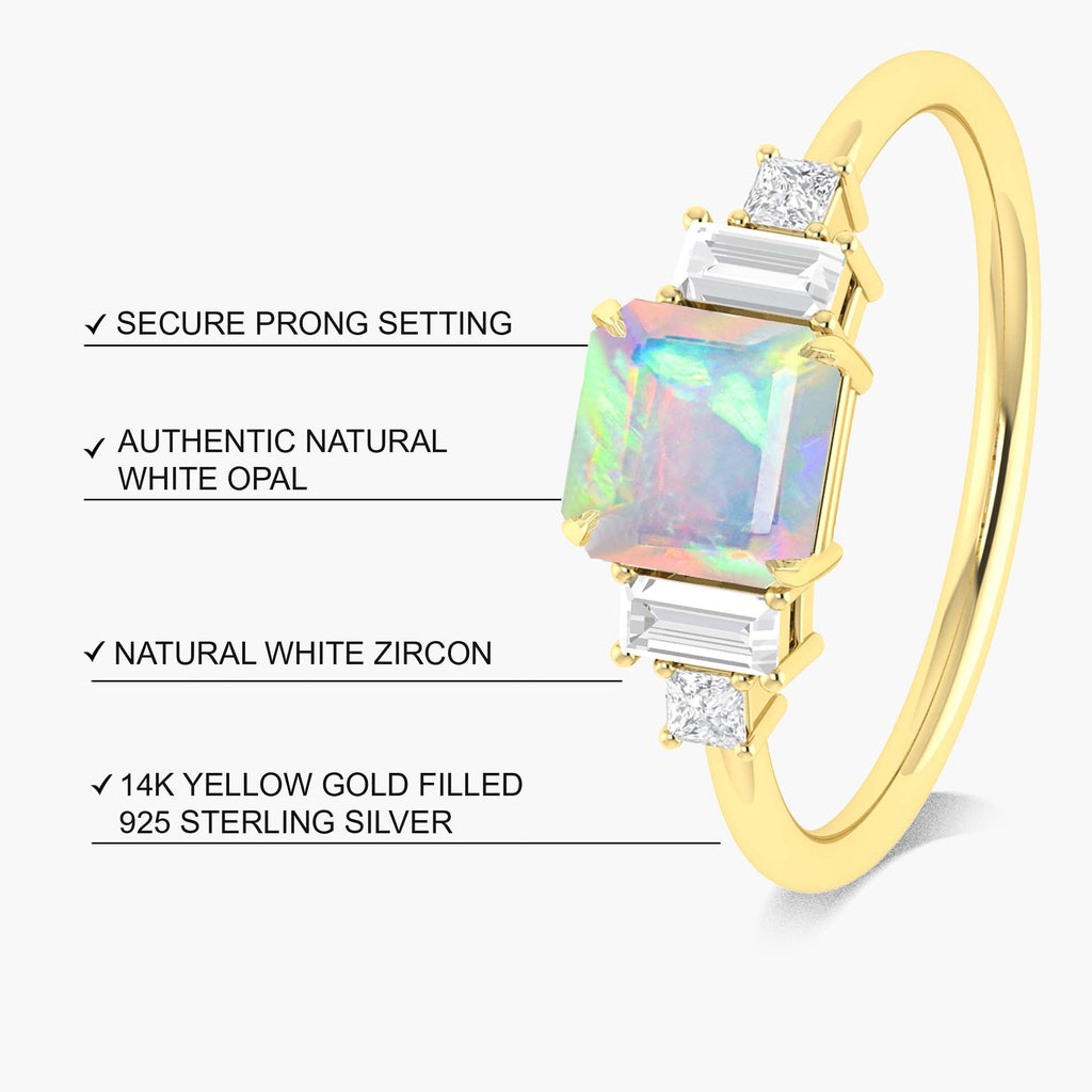 White OpalNatural White Opal Statement Ring, a true fusion of timeless elegance and bold design. Handcrafted with precision, the centerpiece of this ring is a 6 mm square-cut natural White Opal, celebrated for its brilliant play-of-color and iridescent depth. Each opal is uniquely one-of-a-kind, making every ring a personal and distinctive treasure. Crafted in solid 925 sterling silver, this ring offers both lasting durability and a radiant, refined appearance. The high-quality materials ensure a hypoallergenic, tarnish-resistant experience, ideal for everyday wear or special occasions. This elegant ring is more than just jewelry, it's a statement.