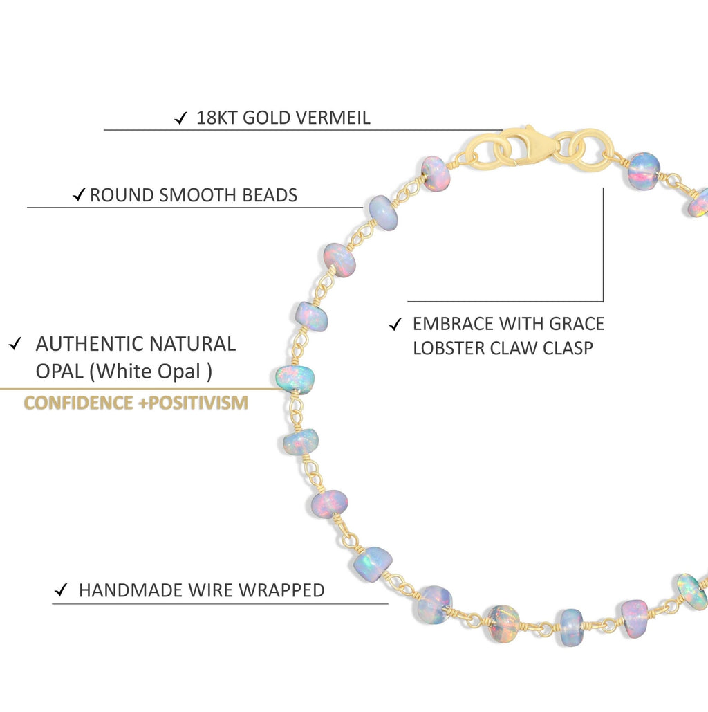 Natural White Opal Wire Wrap Beaded Bracelet Gold Filled Bracelets