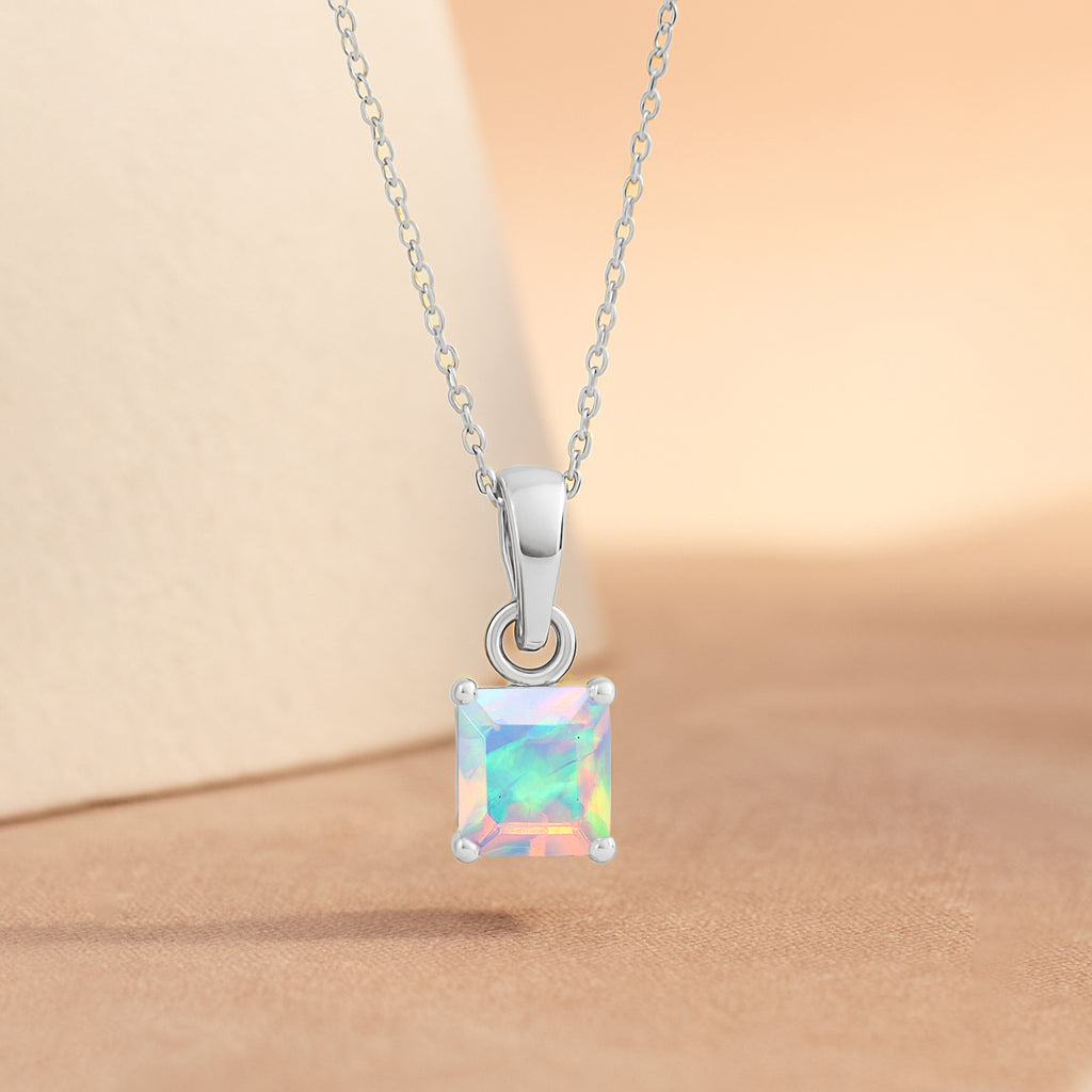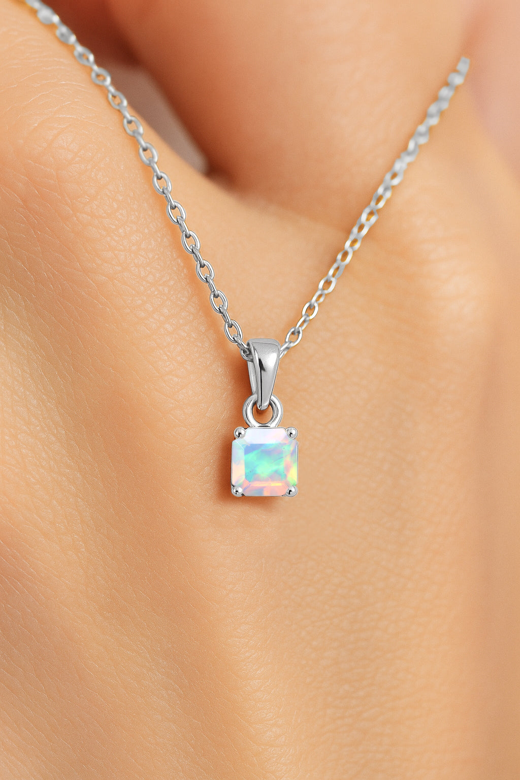 White OpalAdd refined elegance to your look with this White Opal Octagon Pendant Necklace, crafted in premium 925 sterling silver. The centerpiece features a striking 7 mm octagon-cut white opal weighing 1.20 carat, showcasing rich color and brilliant depth. The pendant measures 15.65×7.00 mm and is paired with a 16″ + 2″ cable chain for adjustable comfort. With an approximate weight of 1.50 g, this necklace offers a lightweight, luxurious finish perfect for both everyday wear and special occasions.