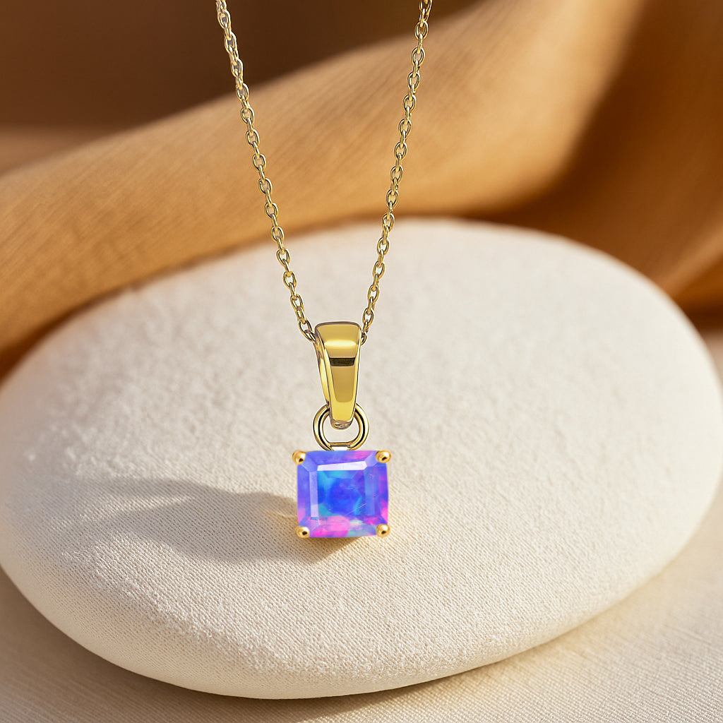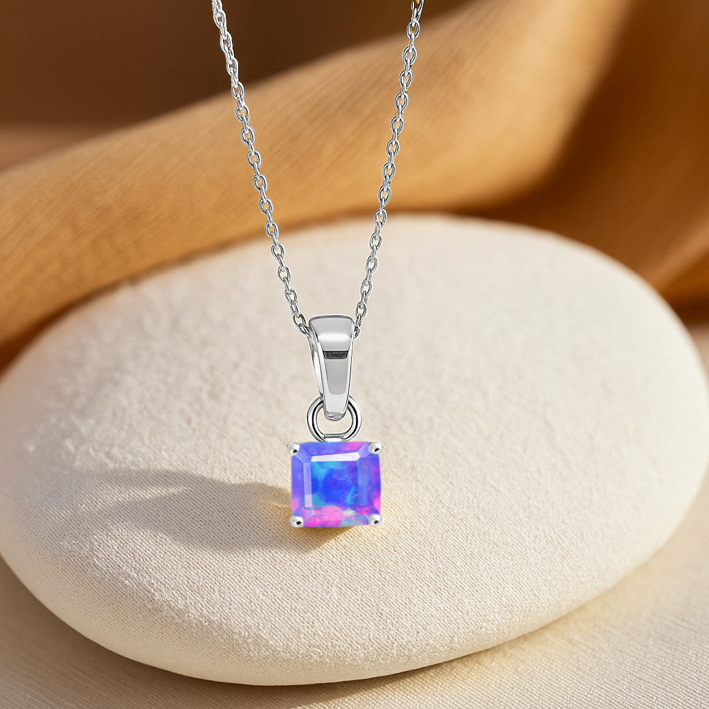 Lavender OpalAdd refined elegance to your look with this Lavender Opal Octagon Pendant Necklace, crafted in premium 925 sterling silver. The centerpiece features a striking 7 mm octagon-cut lavender opal weighing 1.20 carat, showcasing rich color and brilliant depth. The pendant measures 15.65×7.00 mm and is paired with a 16″ + 2″ cable chain for adjustable comfort. With an approximate weight of 1.50 g, this necklace offers a lightweight, luxurious finish perfect for both everyday wear and special occasions.