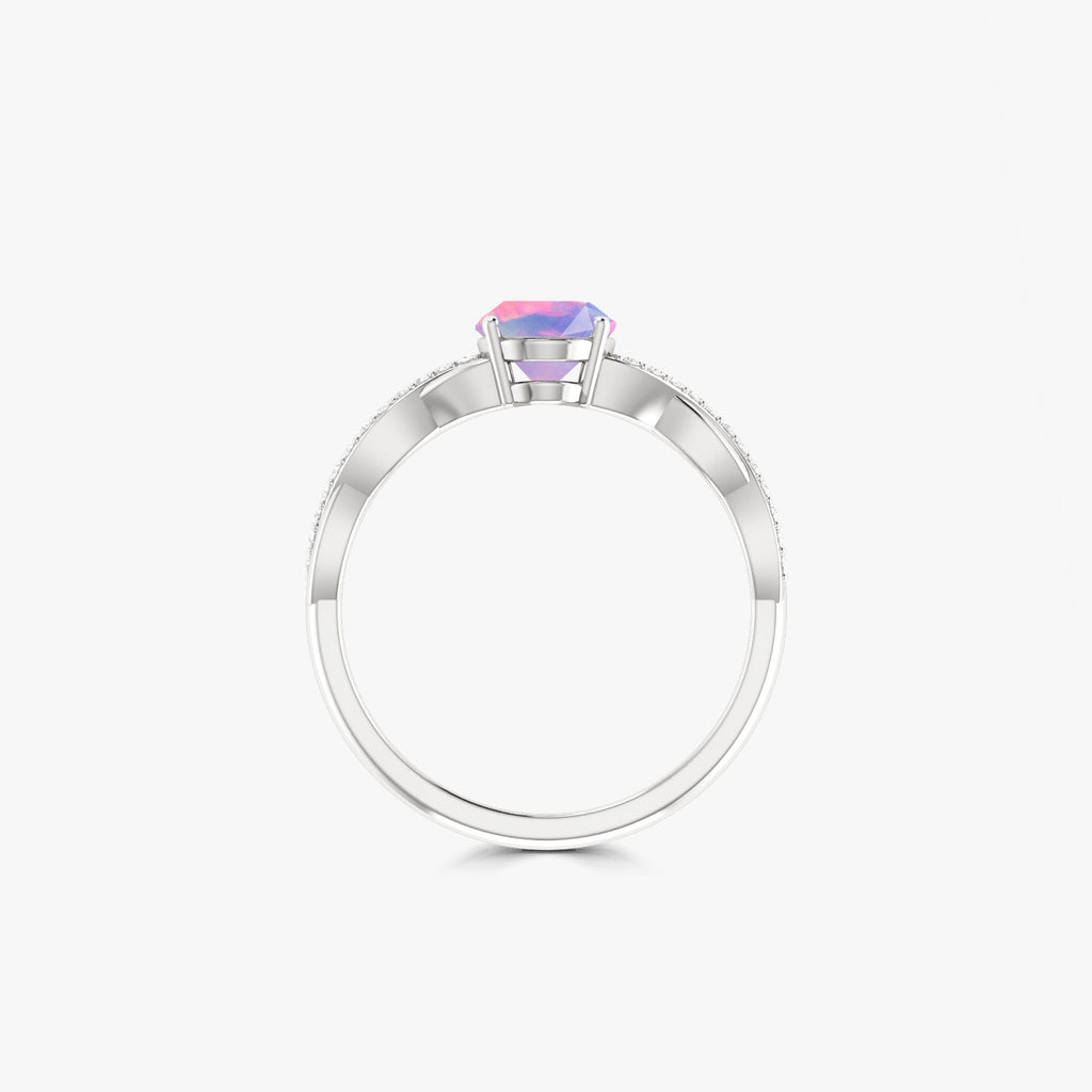 Lavender OpalNatural Lavender Opal 925 Sterling Silver Crossover Statement Ring for Women for a luxurious touch. At its heart lies a captivating 8x6 mm oval faceted Lavender Opal, showcasing a mesmerizing play of color that makes this ring a standout piece for any jewelry lover. Expertly crafted from hypoallergenic 925 sterling silver, this opal ring ensures lasting brilliance and comfort for sensitive skin, making it perfect for both daily wear and special occasions. Whether you're celebrating a wedding, anniversary, birthday, or a romantic promise, this elegant opal ring is a heartfelt gift for the special woman in your life, be it your wife, girlfriend, or mother.