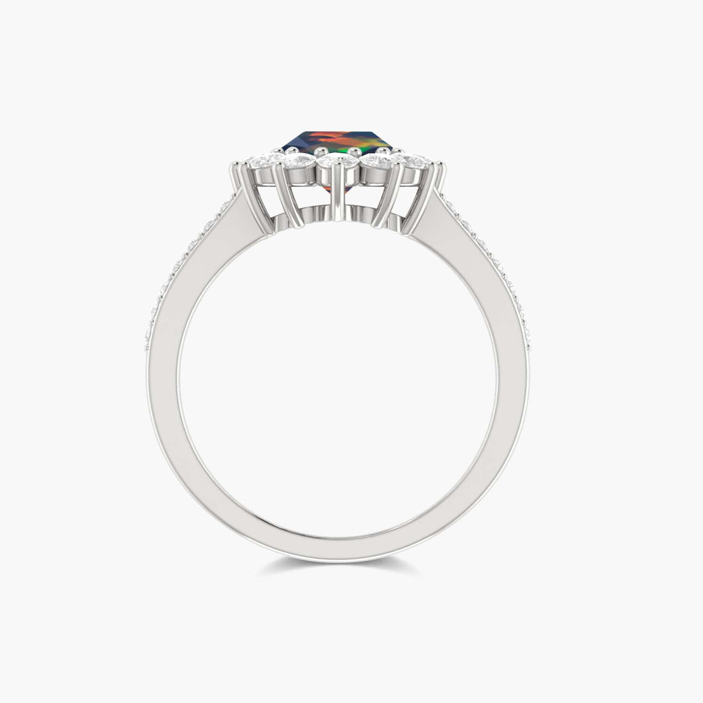 Black OpalNatural Black Opal 925 Sterling Silver Floral Halo Ring, a perfect blend of elegance, craftsmanship, and meaning. Designed for women who appreciate the timeless beauty of fine gemstones, this ring showcases a mesmerizing 8x6MM oval faceted Natural Black Opal, radiating a captivating play of colors that shifts with every glance. Expertly crafted from solid 925 Sterling Silver, this ring ensures long-lasting shine, durability, and hypoallergenic comfort. The intricate floral halo setting beautifully surrounds the opal, adding a romantic, vintage-inspired charm to the piece.