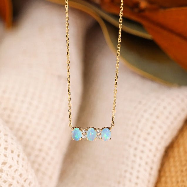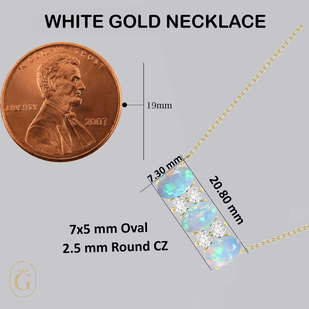 White OpalGOODSTONE JEWELS Natural Opal Pendant Necklace a radiant fusion of elegance, color, and craftsmanship. Designed for womens who appreciate meaningful, high-quality gemstone jewelry, this 3-stone necklace features natural 7x5mm oval opal gemstones, totaling 1.8 carats, beautifully set in a vertical design that captures light and attention with every move. Crafted from hypoallergenic 925 sterling silver for lasting brilliance, this pendant necklace offers both luxury and comfort. Whether you’re dressing up for a night out or adding a touch of sophistication to your everyday look, this versatile piece is a timeless addition to your wardrobe.