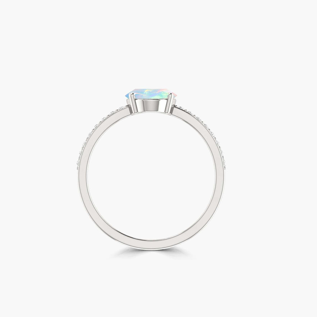 White OpalThis Natural White Opal Solitaire Wedding Ring for women is crafted in 925 sterling silver. This ring features a stunning 9x7 mm Oval-shaped faceted white opal known for its mesmerizing play of color and spiritual energy. The opal’s captivating hues shift with light, making each piece truly unique and full of life. Designed to stand out, this women’s Solitaire Wedding ring blends elegance and boldness, perfect for those who love meaningful gemstone jewelry. Versatile enough to elevate both casual and formal looks, it can be worn solo for impact or stacked for added flair.