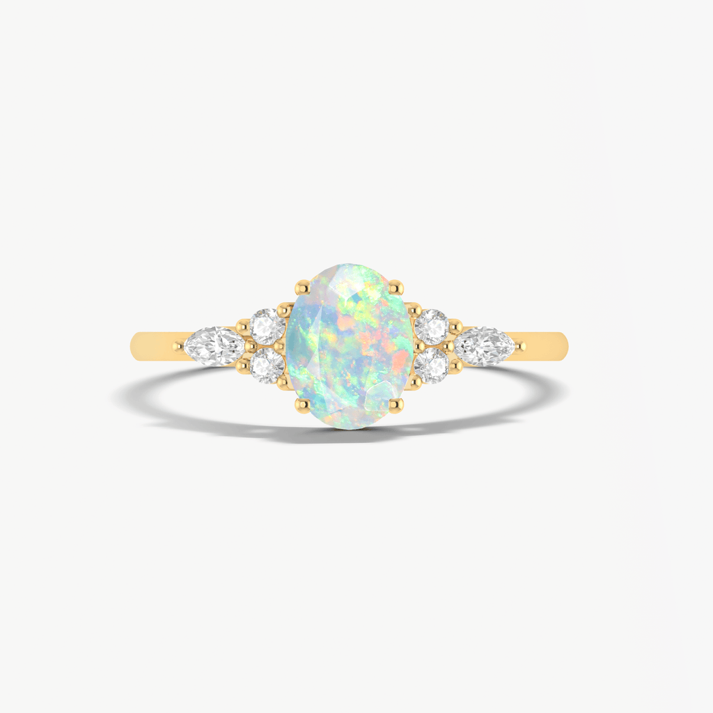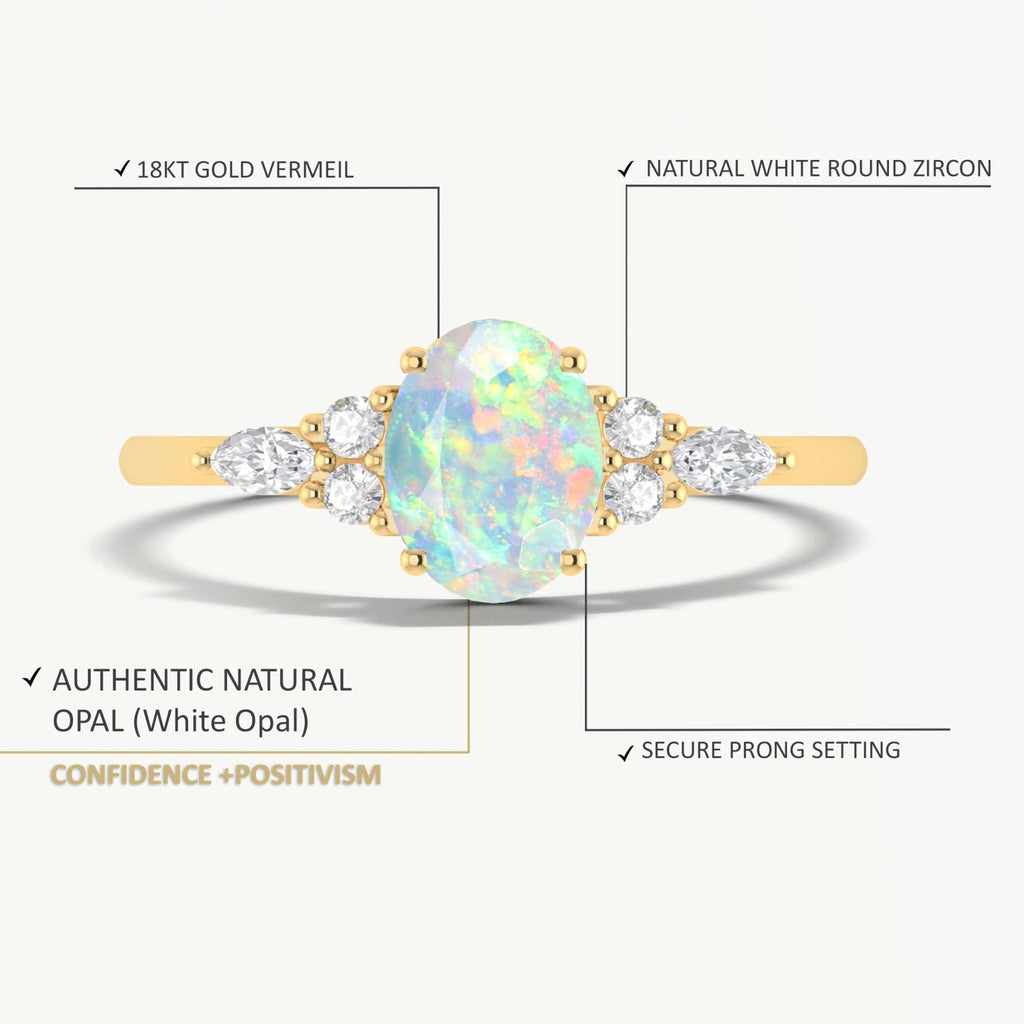 White OpalNatural White Opal 925 Sterling Silver Solitaire with Accents Ring for Women, a luxurious piece designed to make every moment unforgettable. This exquisite ring features a genuine natural White Opal, cut in a graceful 8x6mm oval shape and weighing approximately 0.9 carats. The gemstone is known for its mesmerizing play-of-color, making each piece truly unique. Set in solid 925 sterling silver, this ring blends classic beauty with modern flair. The smooth, polished band is hypoallergenic, nickel-free, and ideal for sensitive skin, ensuring lasting comfort and brilliance. Whether you're dressing up for a wedding, anniversary, or simply adding a touch of glamour to your everyday look, this White Opal Solitaire with Accents ring is your go-to accessory.