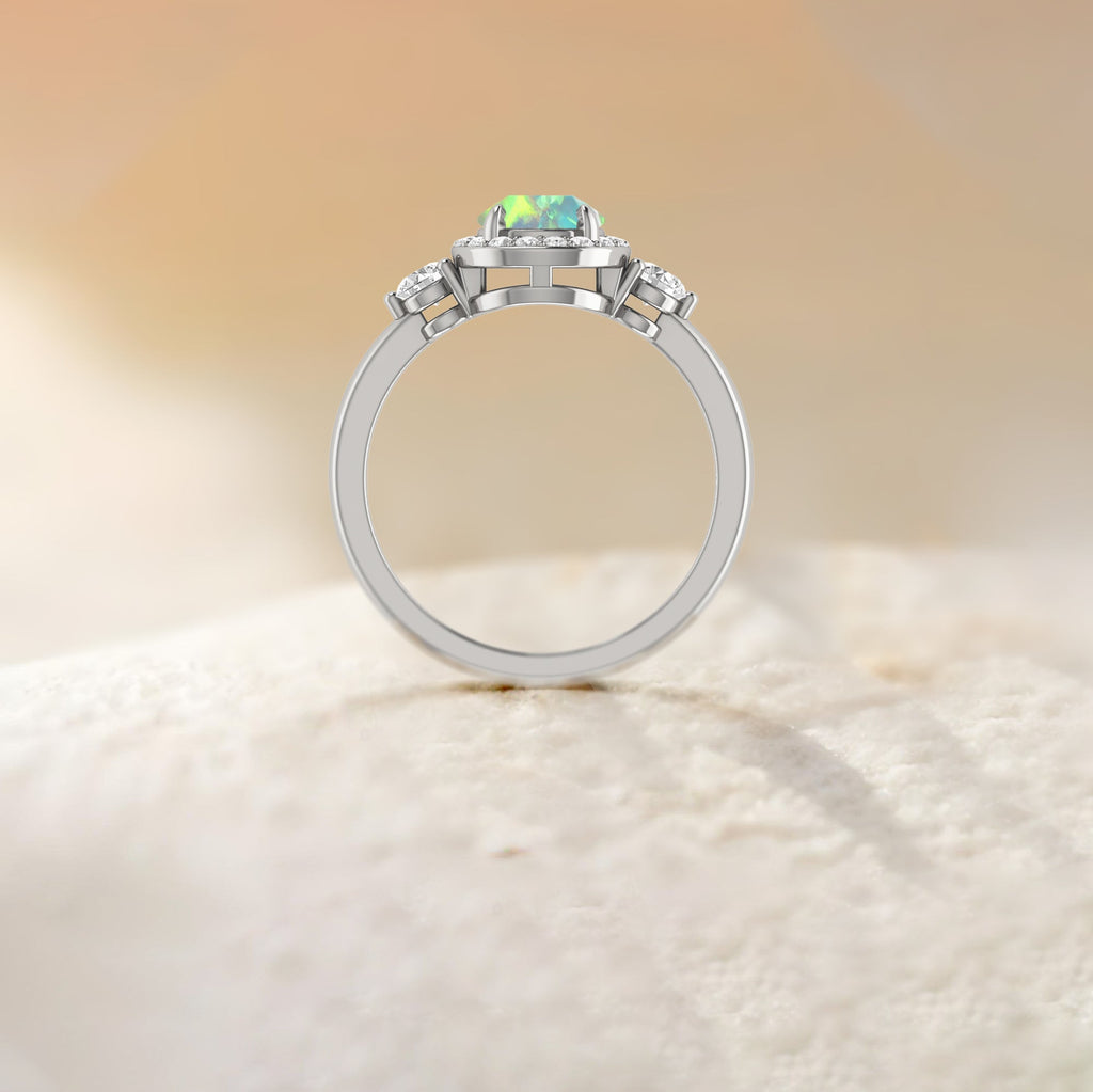 White OpalNatural White Opal 925 Sterling Silver Halo Ring, featuring a genuine 8x6 mm pear-shaped White Opal set in premium sterling silver. Designed for women who appreciate unique and meaningful birthstone jewelry, this ring offers timeless elegance combined with sophisticated style. Whether you're searching for the perfect gift for your mother, wife, or girlfriend, this ring makes a memorable present for anniversaries, weddings, birthdays, or any special occasion. The eye-catching White Opal symbolizes mystery and beauty, making this piece a cherished keepsake that expresses love and thoughtfulness.