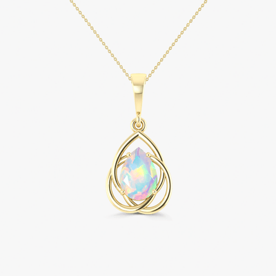 Pear Shape Natural White Opal Solitaire Pendant Chain Necklace