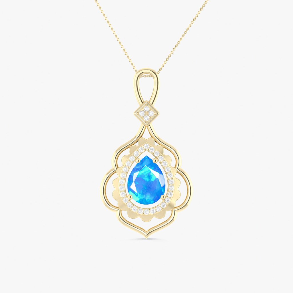 Blue OpalGOODSTONE JEWELS Natural Blue Opal Charm Pendant Necklace, an elegant blend of luxury and meaning. This stunning piece showcases a trio of natural gemstones: a shimmering Blue Opal pear-shaped and 9x7mm in size, totaling 1.2 carats. Expertly crafted in premium 925 sterling silver, this necklace offers both lasting shine and hypoallergenic comfort for sensitive skin. The 16-inch cable chain includes a 2-inch extender, allowing you to adjust the length for perfect layering or a tailored fit. Secured with a durable lobster clasp, it stays in place all day long. Whether you're dressing up for a special occasion or elevating your everyday style, this gemstone pendant adds a unique and sophisticated touch. Perfect as a heartfelt gift for birthdays, anniversaries, or just because, it’s a meaningful jewelry piece that symbolizes passion, love, and serenity. With a pendant size of 33.6 x 18.3 mm and a total weight of 3.35 grams, it’s lightweight yet striking designed to be cherished for years.
