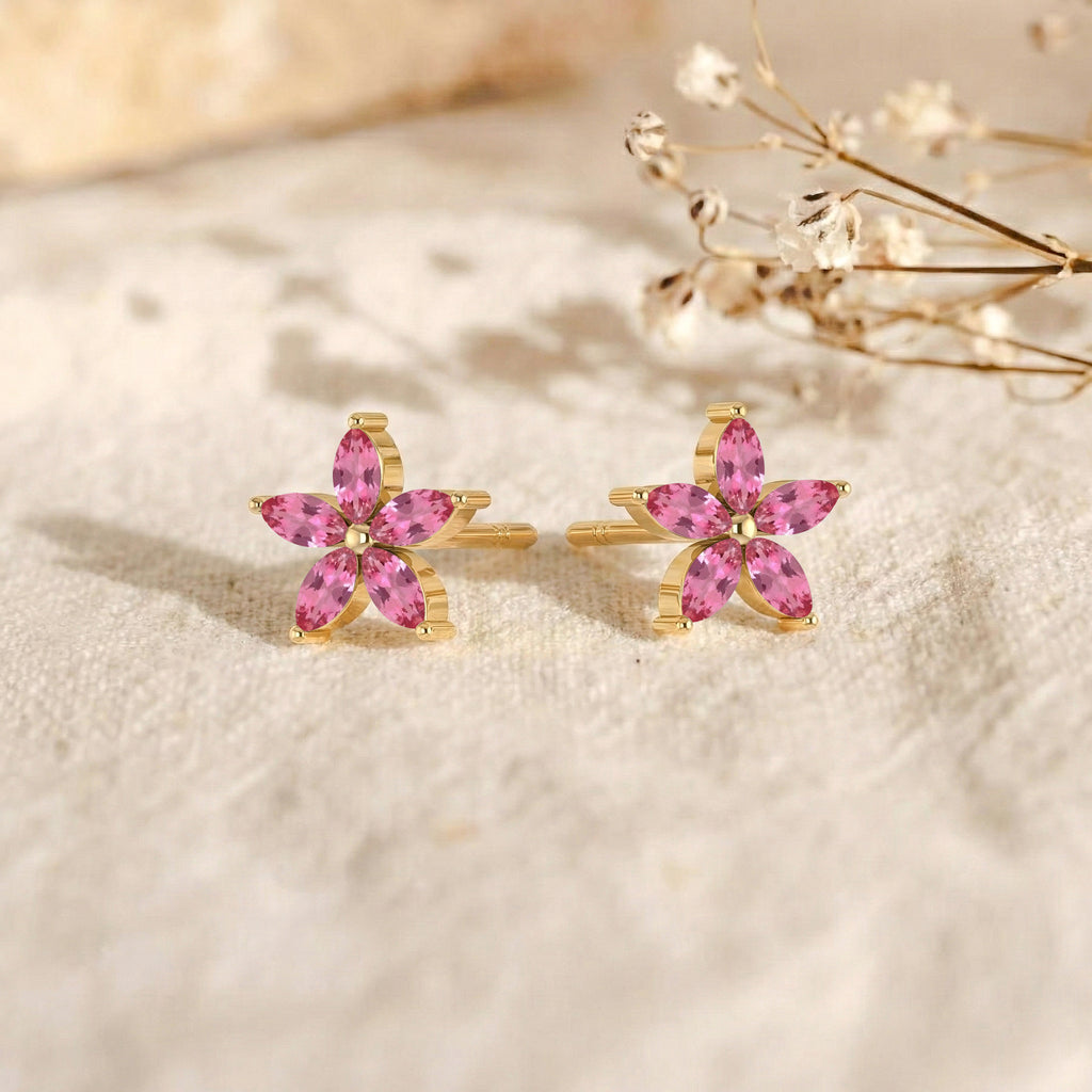 Pink Tourmaline Flower and Marquis Shape Stud Earring in 925 Sterling Silver 4X2 MM 3ct.