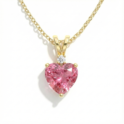 Pink Tourmaline Heart Pendant Necklace in Yellow Gold Plated 1.5ct