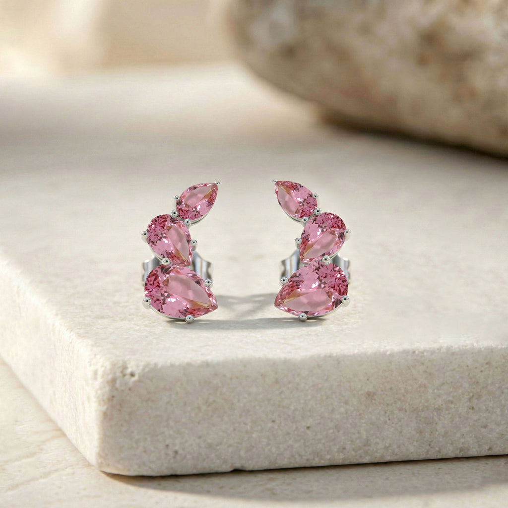 Add a romantic touch to your jewelry collection with these Pink Tourmaline Pear Stud Earrings crafted in genuine 925 sterling silver. Featuring six faceted pear-shaped pink tourmaline stones—7x5 mm (2), 6x4 mm (2), and 5x3 mm (2)—totaling approximately 3.30 carats, these earrings radiate vibrant pink brilliance. Measuring 13.80 x 8.00 mm and weighing 2.60 grams, they offer a bold yet comfortable fit for everyday or special occasions. Perfect as an October birthstone gift, these sterling silver tourmaline studs blend feminine charm with timeless elegance.