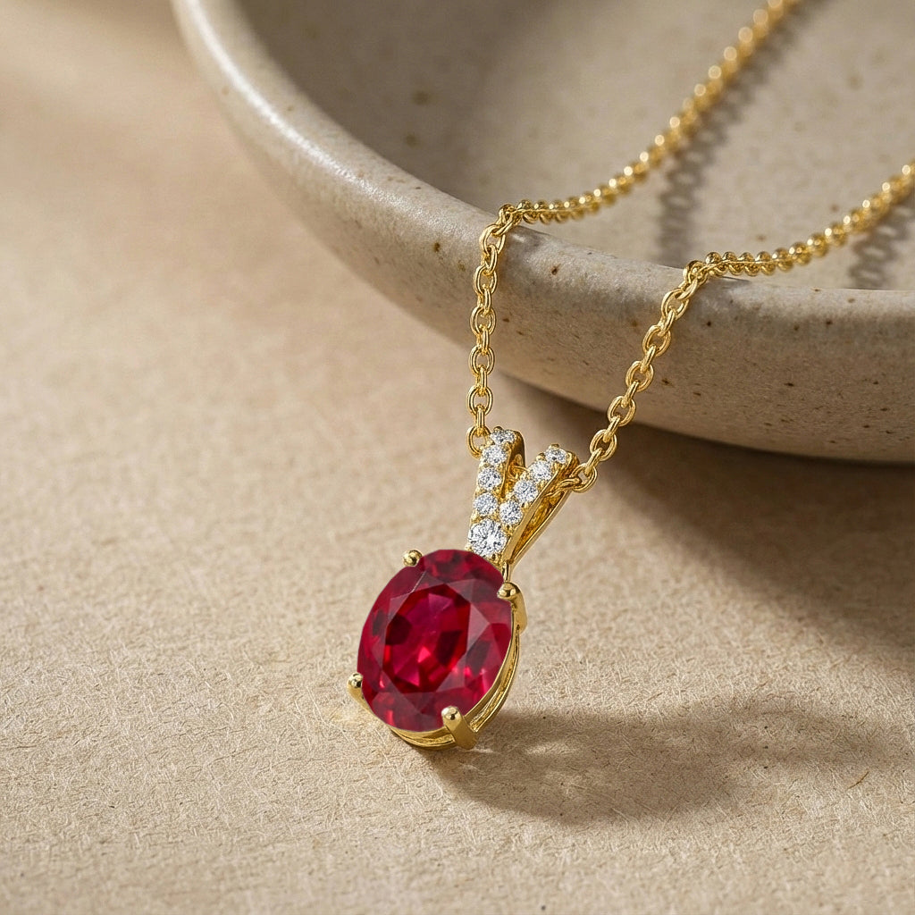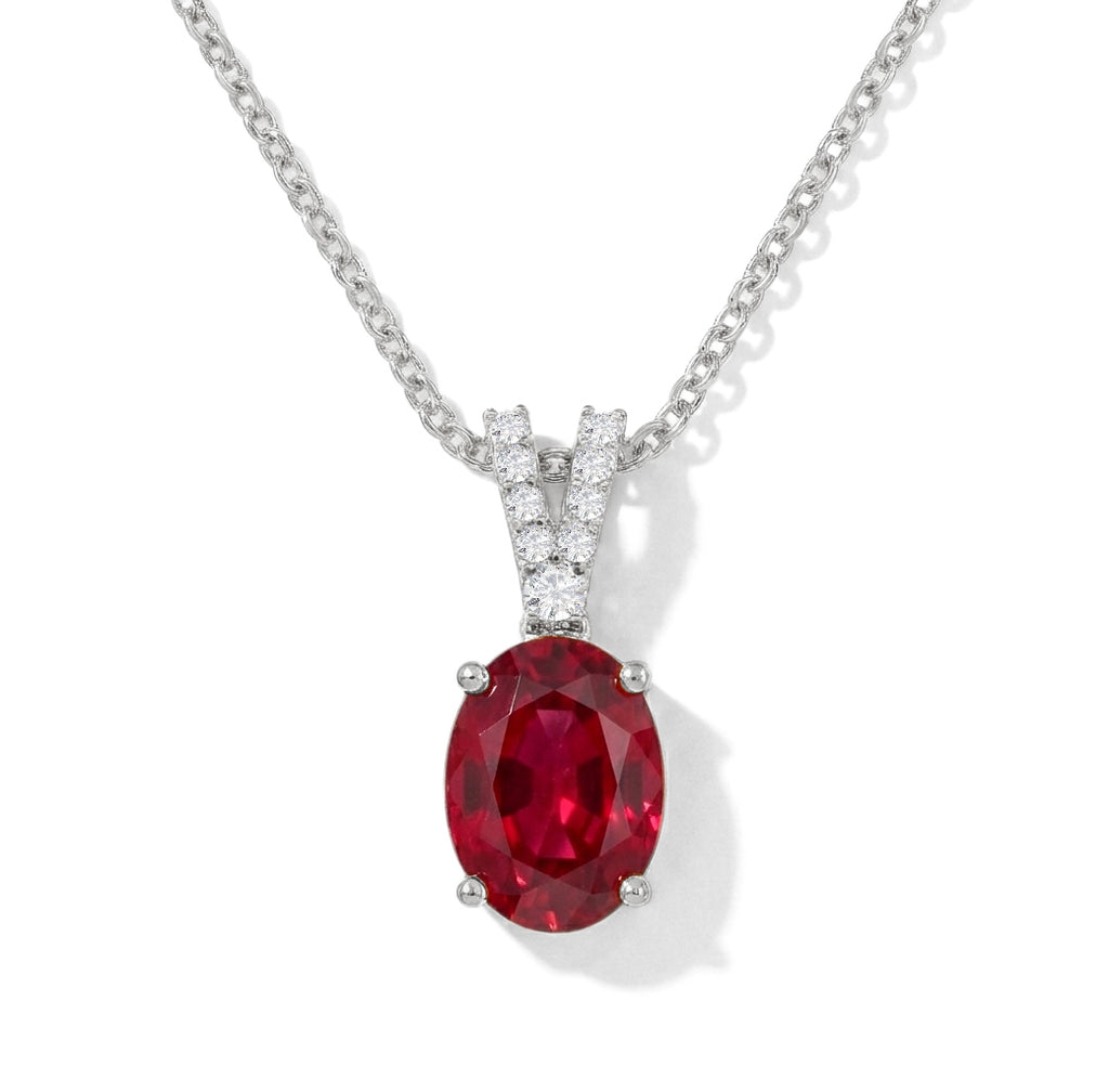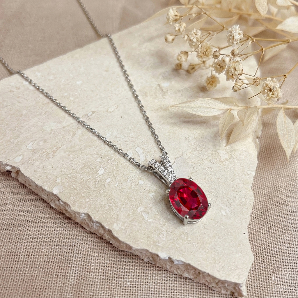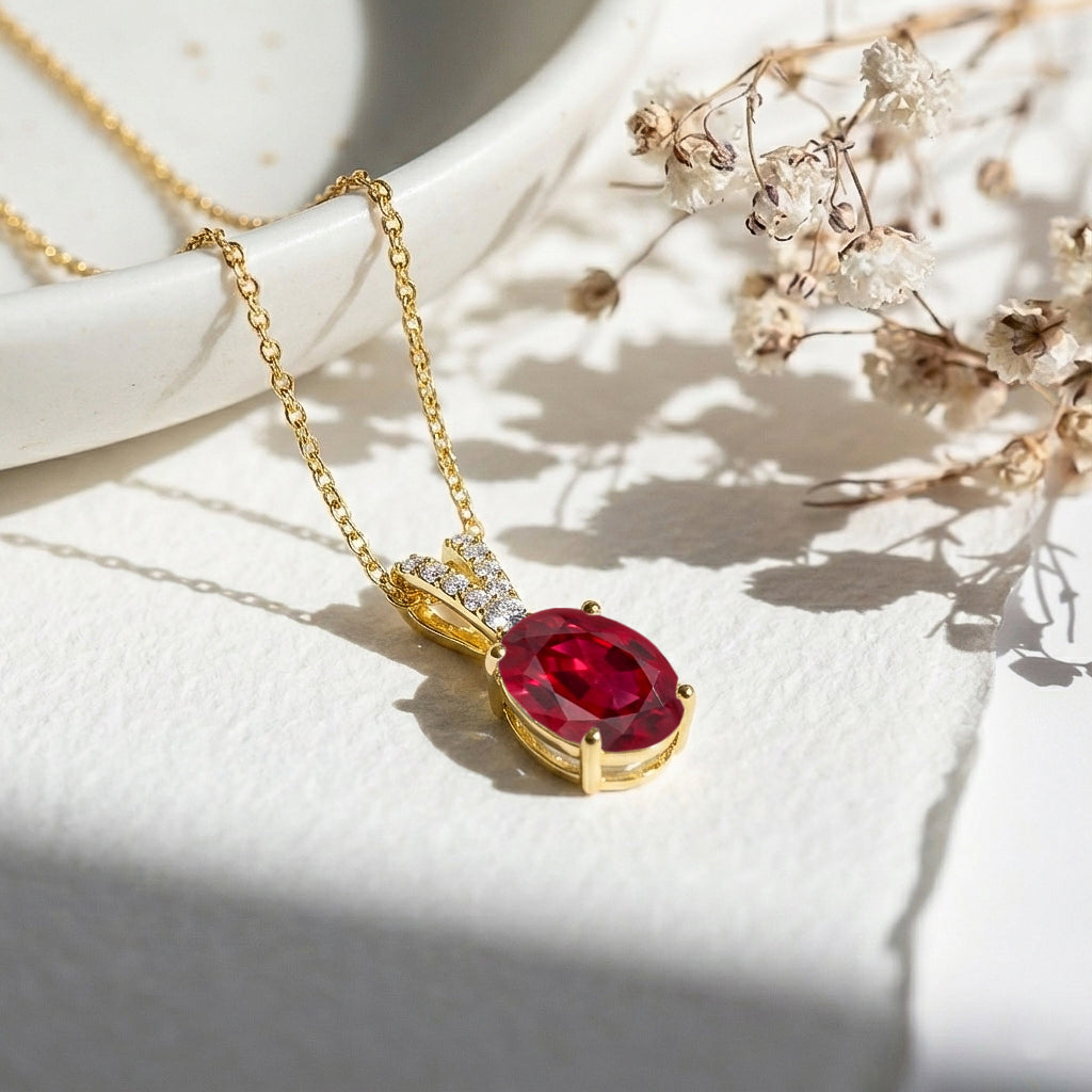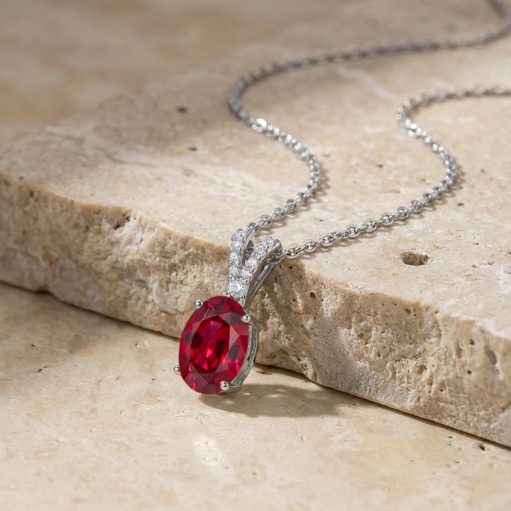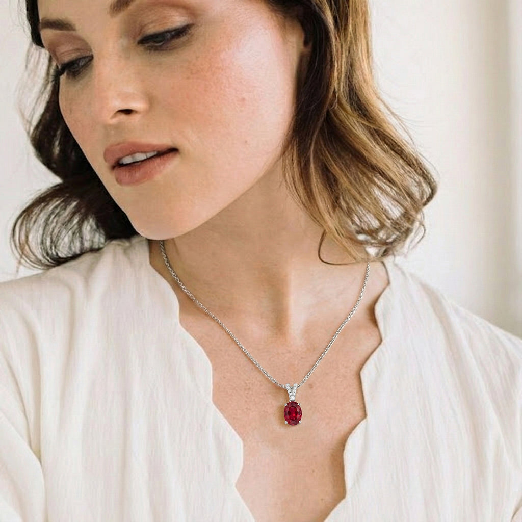 Ruby Solitaire Pendant Necklace in 925 Sterling Silver features a vibrant 1.2ct oval-cut ruby (8x6mm) with brilliant faceted sparkle. Set in a timeless solitaire design, the pendant measures 15.81 x 6.84mm and is suspended from a 16” + 2” adjustable cable chain with a secure lobster clasp. Crafted from high-quality sterling silver, this elegant ruby necklace offers rich red hues, classic sophistication, and everyday comfort—perfect for gifting or adding a touch of luxury to any jewelry collection.