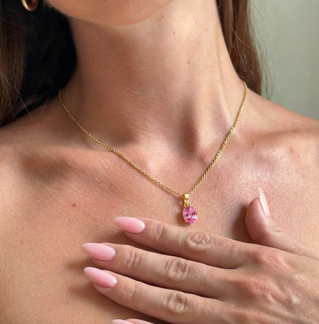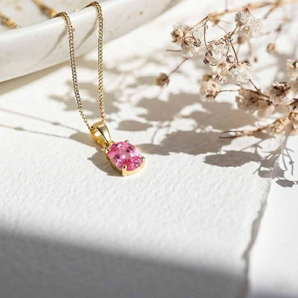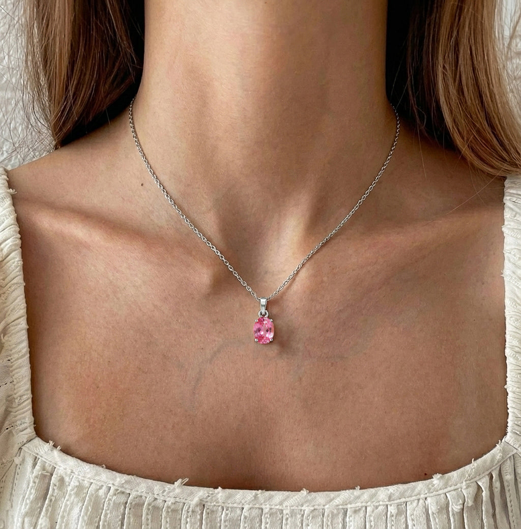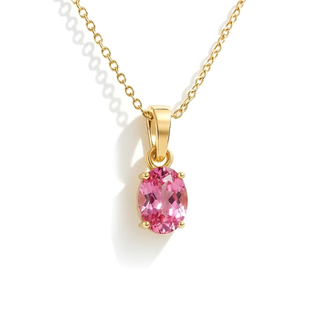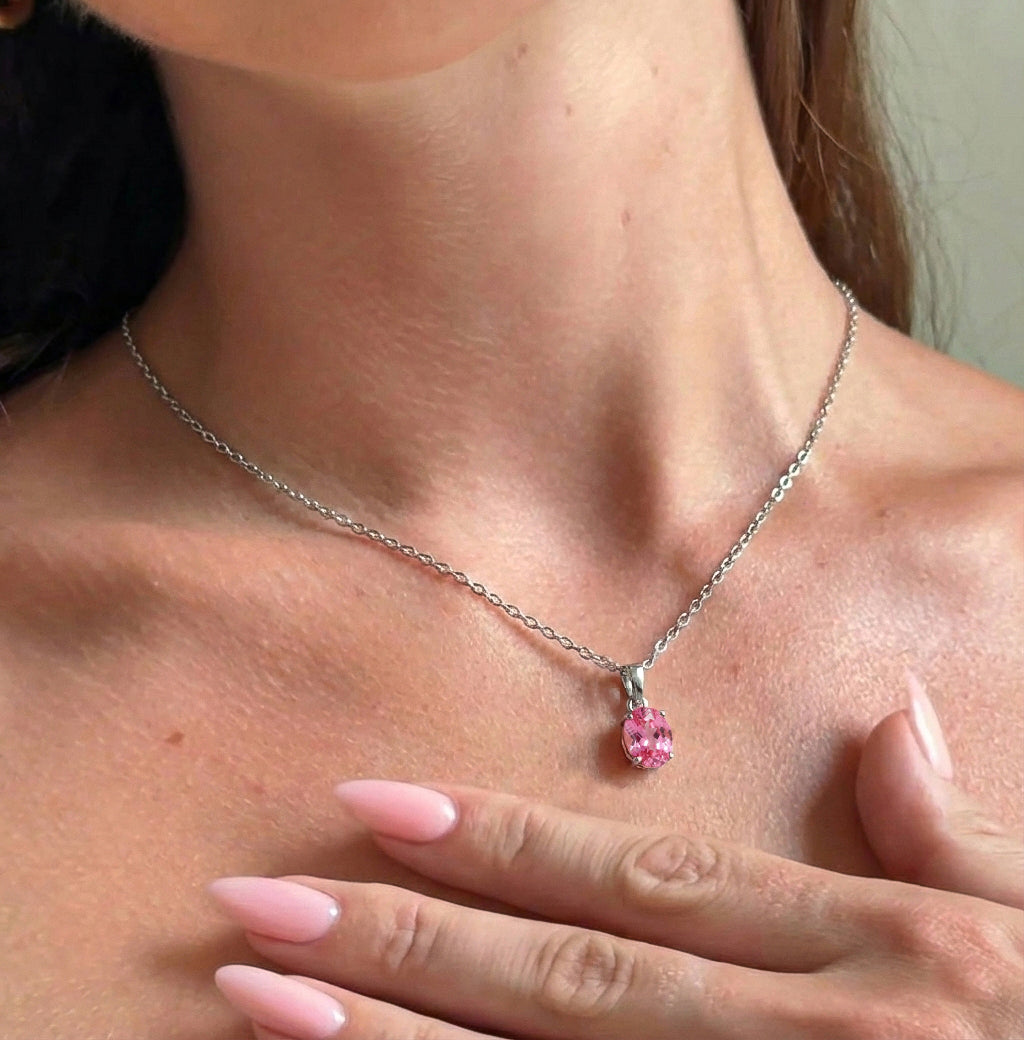 Add a touch of elegance with this Pink Tourmaline solitaire pendant necklace crafted in genuine 925 sterling silver. Featuring a 9x7 mm oval faceted pink tourmaline gemstone (approx. 1.4 carat), this pendant radiates delicate pink brilliance and timeless charm. The pendant measures 17.70 x 7 mm and includes a 16” + 2” adjustable sterling silver cable chain with a secure lobster clasp. Perfect for everyday wear, October birthstone gifts, or special occasions.