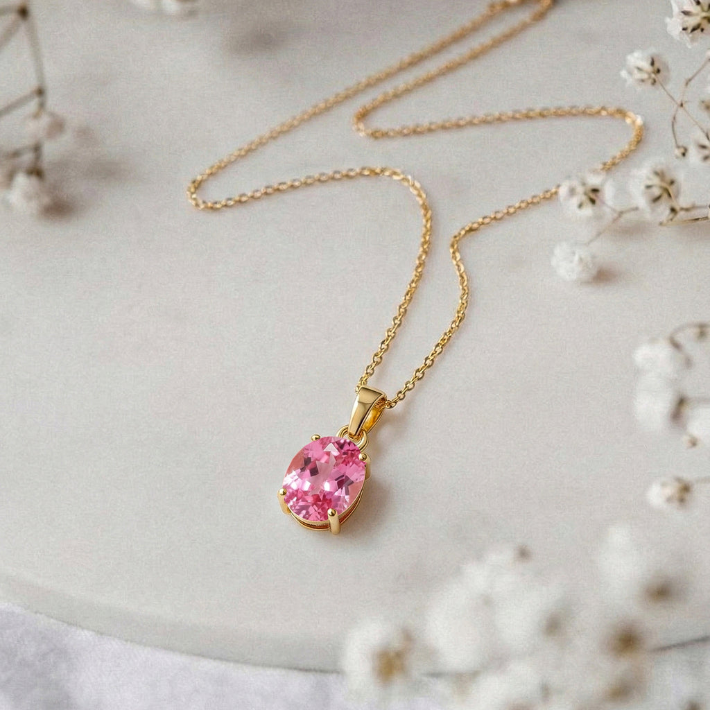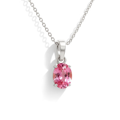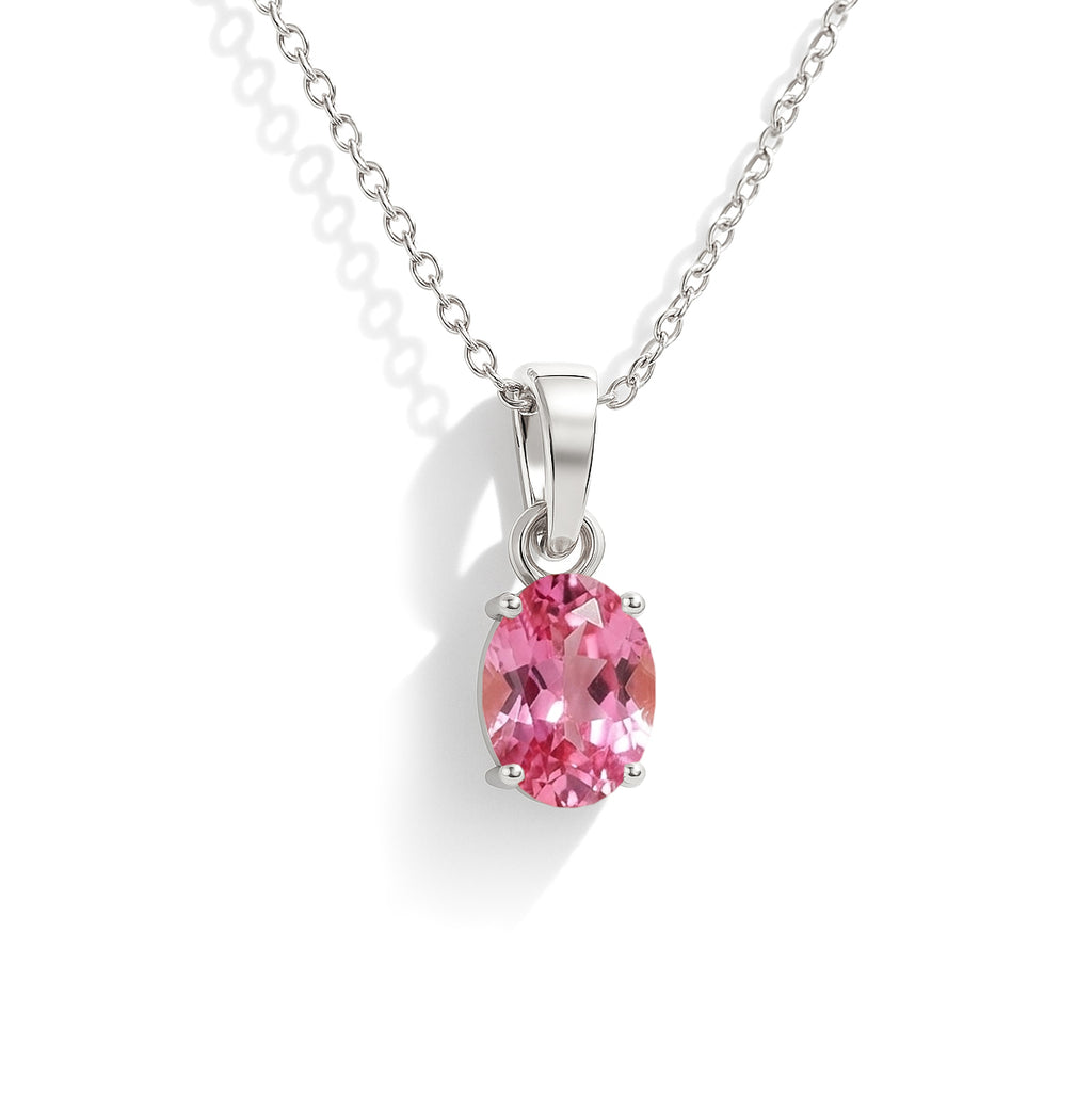 Pink Tourmaline Solitaire Pendant Necklace in 925 Sterling Silver 9x7 MM 1.4ct