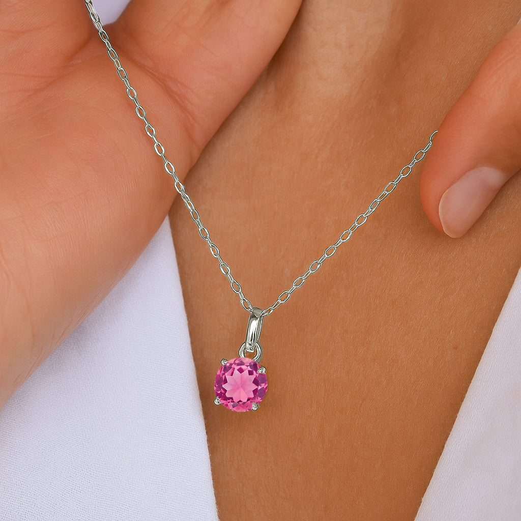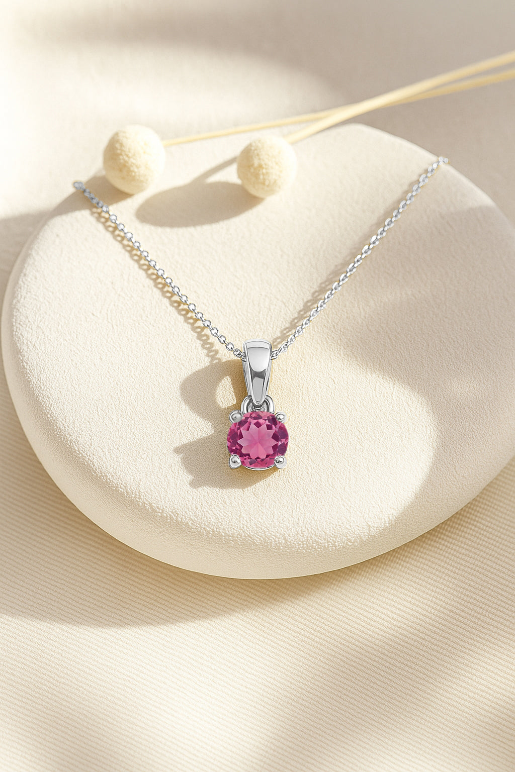 Add timeless elegance to your look with this Pink Tourmaline Round Teardrop Pendant Necklace, crafted in high quality 925 sterling silver. The pendant features a faceted 7 mm round Pink Tourmaline weighing 1.5 carat, showcasing its signature iridescent glow. Measuring 15.60×7.00 mm, it hangs delicately from a 16″ + 2″ adjustable cable chain for a perfect fit. With a lightweight 1.60 g design, this necklace brings a soft, luminous charm to any outfit ideal for both everyday wear and special occasions.