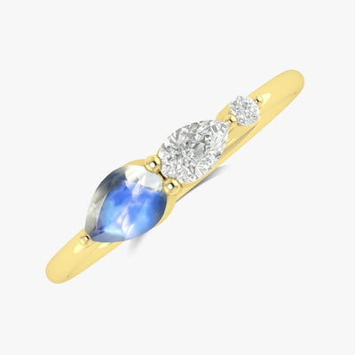 Rainbow Moonstone Pear Three Stone Ring