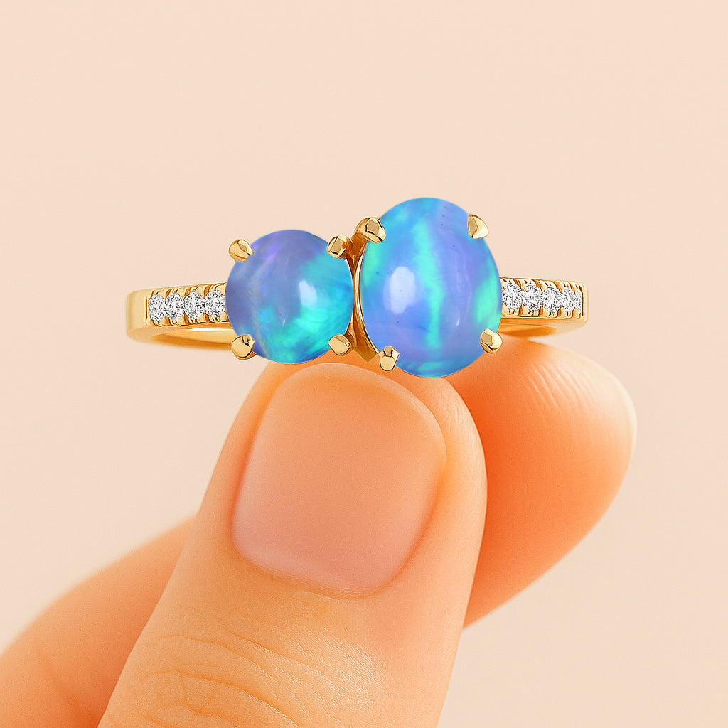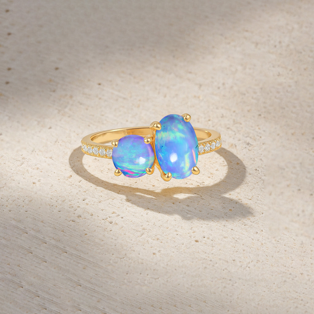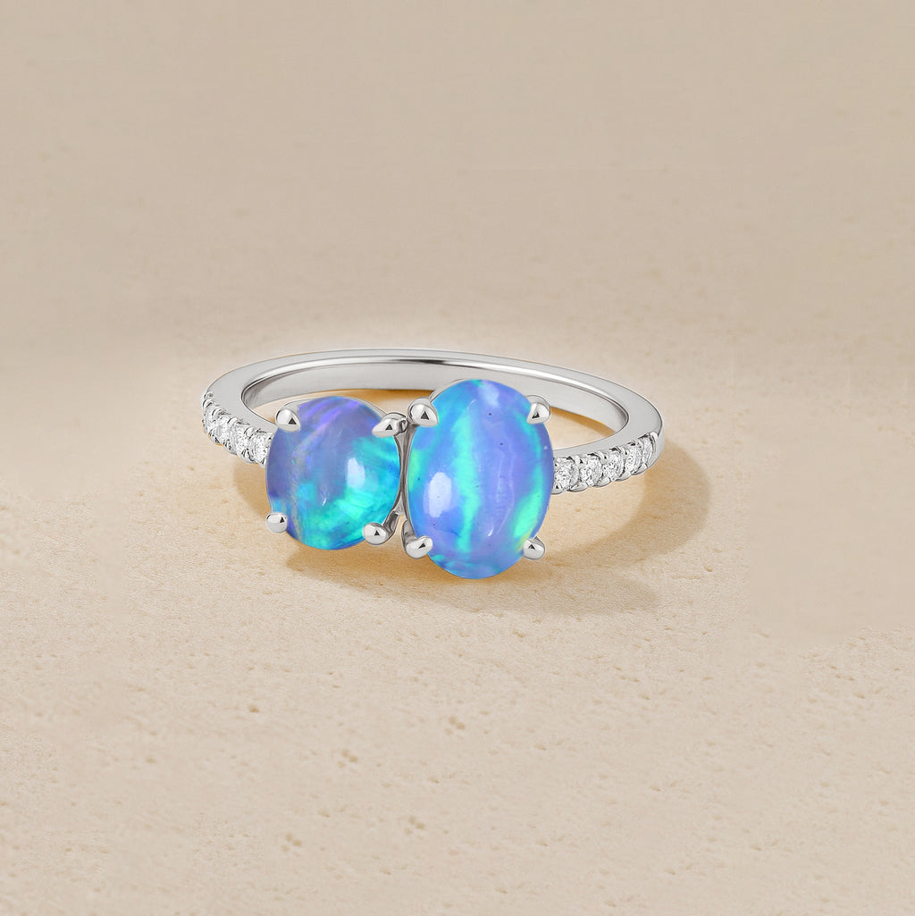 Blue OpalElevate your everyday elegance with this exquisite Blue Opal Two-Stone Ring, masterfully crafted in 925 sterling silver. Featuring a radiant 8x6 mm oval opal paired with a smooth 6 mm round opal, this 1.70 ct design highlights the gemstone’s soft iridescence and timeless charm. Its polished silver band and balanced silhouette create a refined, modern look suitable for any occasion. Weighing approximately 3.50 g, this opal ring adds a luxurious touch to your jewelry collection and makes a thoughtful gift for those who adore unique, meaningful gemstones.