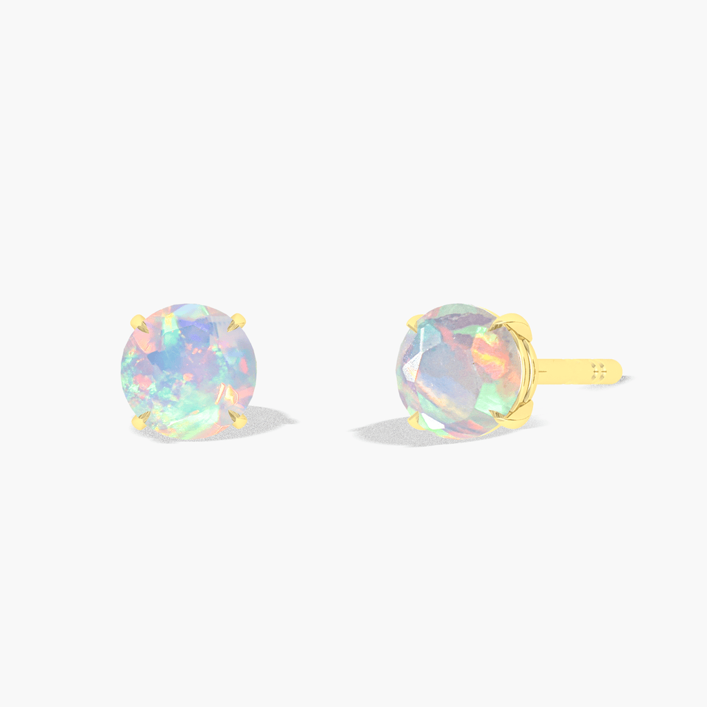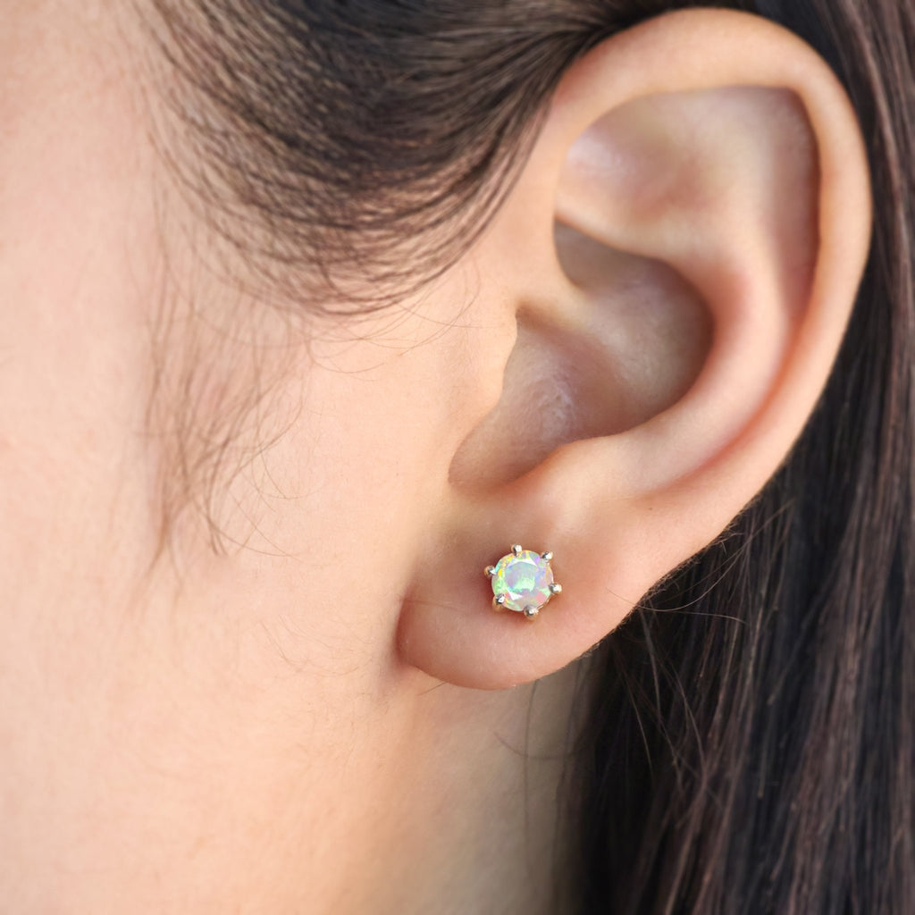 White OpalIntroducing the White Opal Stud Earrings! This beautiful earring features a round of stunning white opal gemstone. Wear it to add a touch of elegance and love to any outfit. Perfect for special occasions or everyday wear, this earring is sure to dazzle and delight.