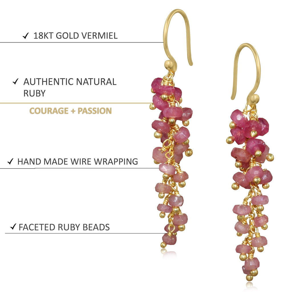 These ruby earrings with beaded cluster are an exquisite display of opulence and vivid hue. The rubies' rich red tones radiate refinement and elegance, while the hanging design offers a little bit of fun movement. These earrings boost everyday looks and are ideal for special occasions. They are lightweight and comfortable to wear.