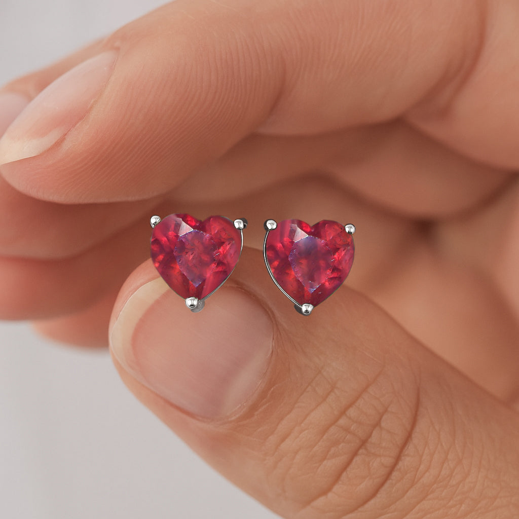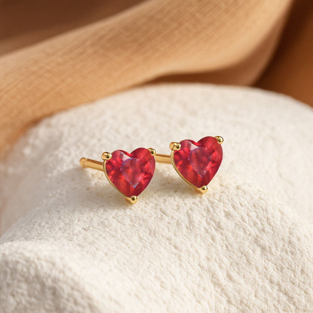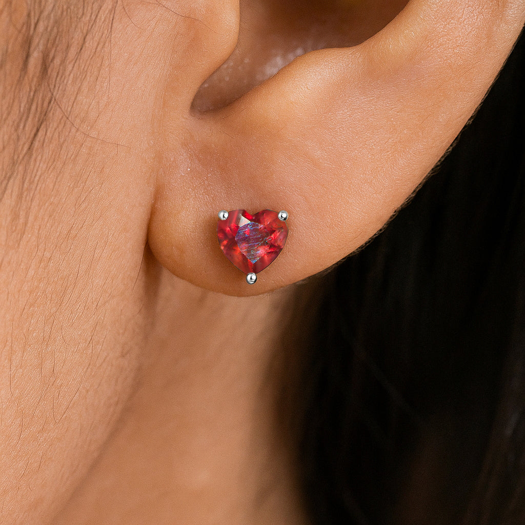 RubyElevate your everyday elegance with these Ruby Heart Stud Earrings, beautifully crafted in 925 sterling silver. Each earring features a 5 mm heart-shaped ruby weighing 0.65 ct, offering a soft, iridescent glow. With a delicate size of 5.52 × 5.30 mm and an approx. weight of 0.47 g, they are lightweight, comfortable, and perfect for daily wear or gifting. A timeless symbol of love and serenity, designed to complement any style.