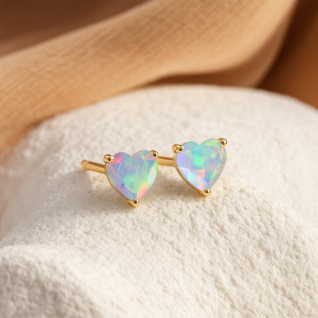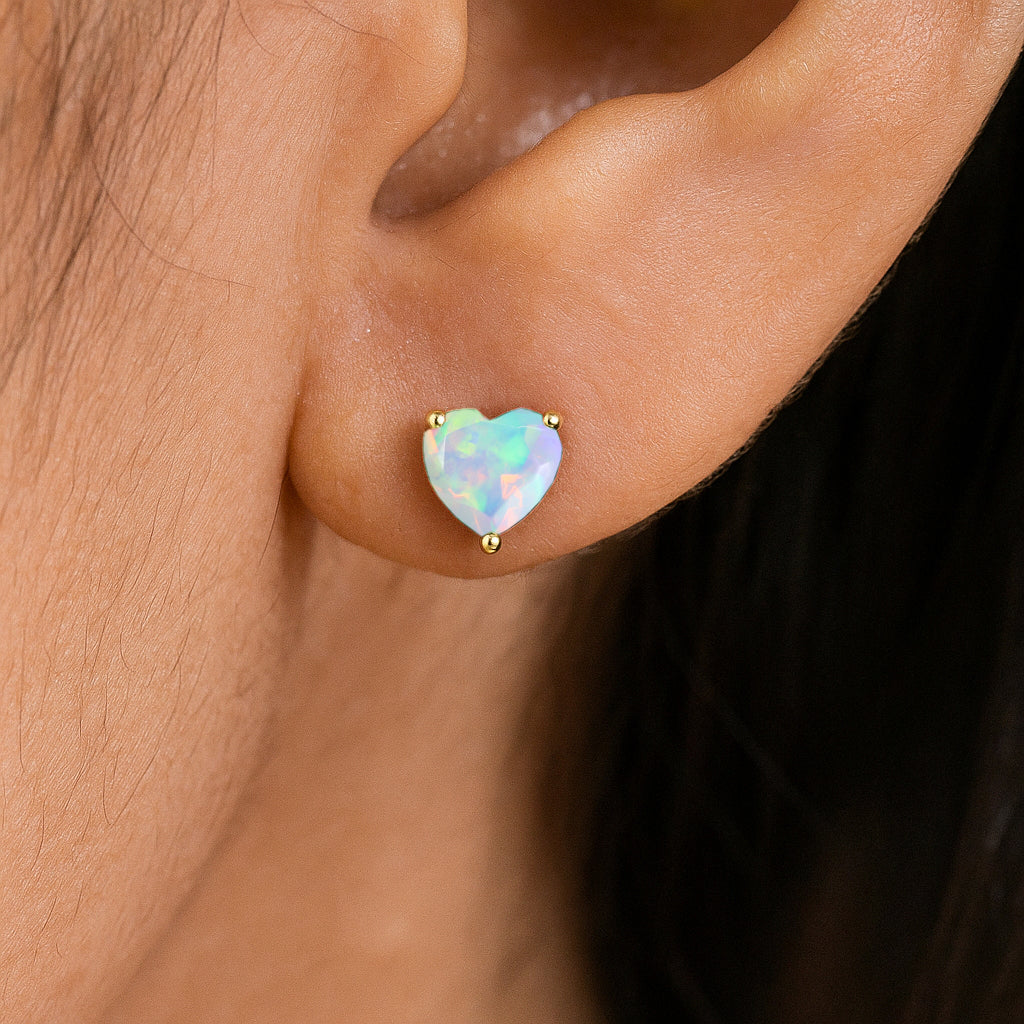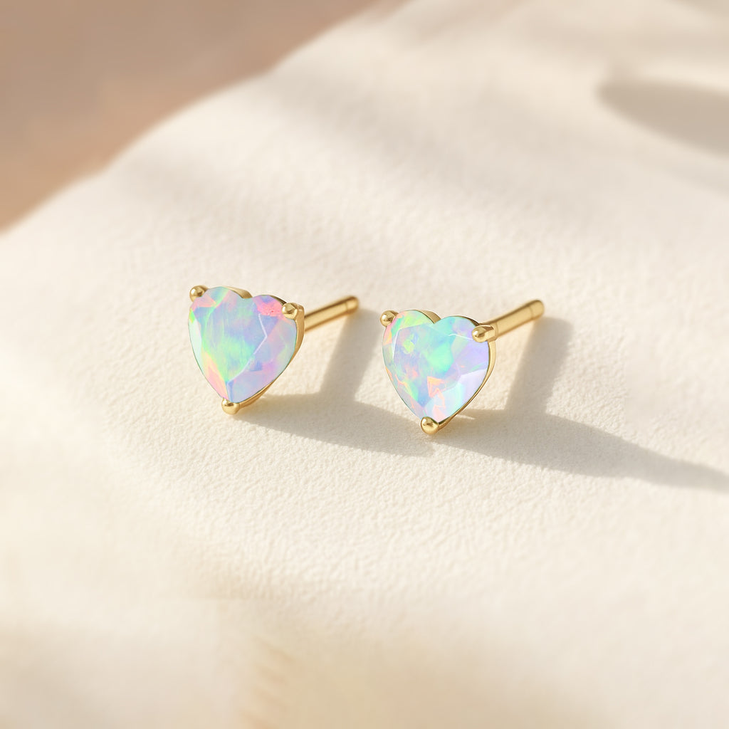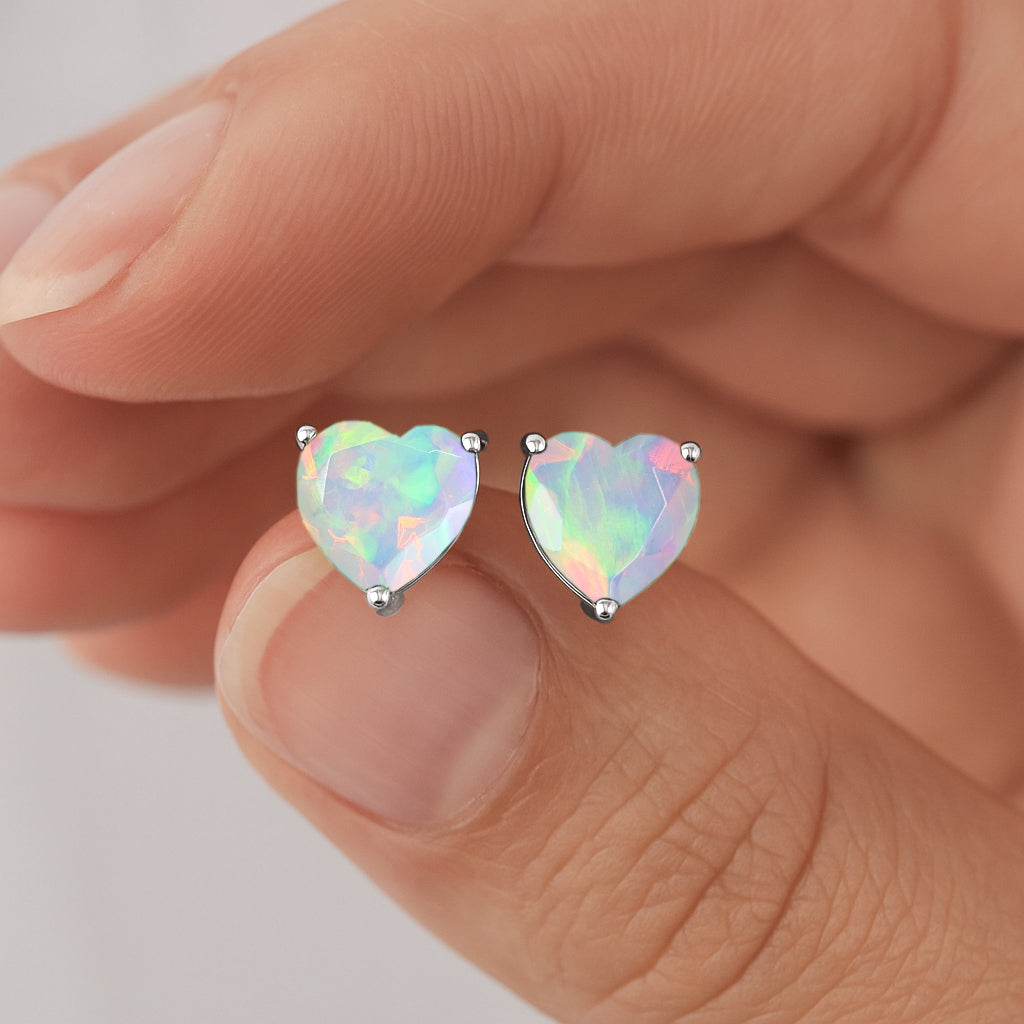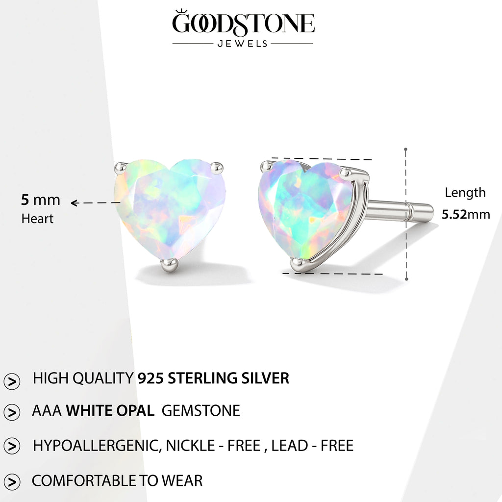 White OpalElevate your everyday elegance with these White Opal Heart Stud Earrings, beautifully crafted in 925 sterling silver. Each earring features a 5 mm heart-shaped white opal weighing 0.65 ct, offering a soft, iridescent glow. With a delicate size of 5.52 × 5.30 mm and an approx. weight of 0.47 g, they are lightweight, comfortable, and perfect for daily wear or gifting. A timeless symbol of love and serenity, designed to complement any style.