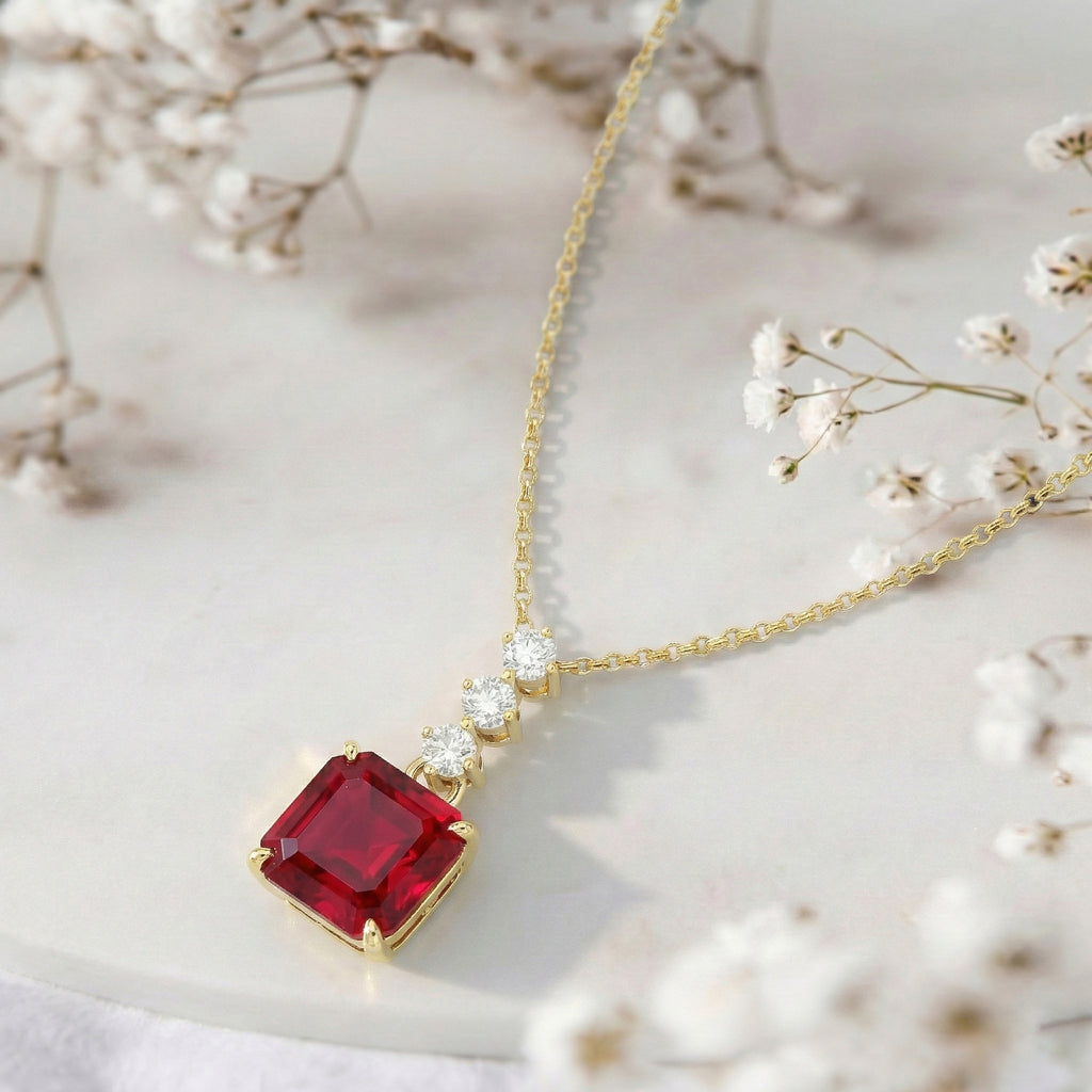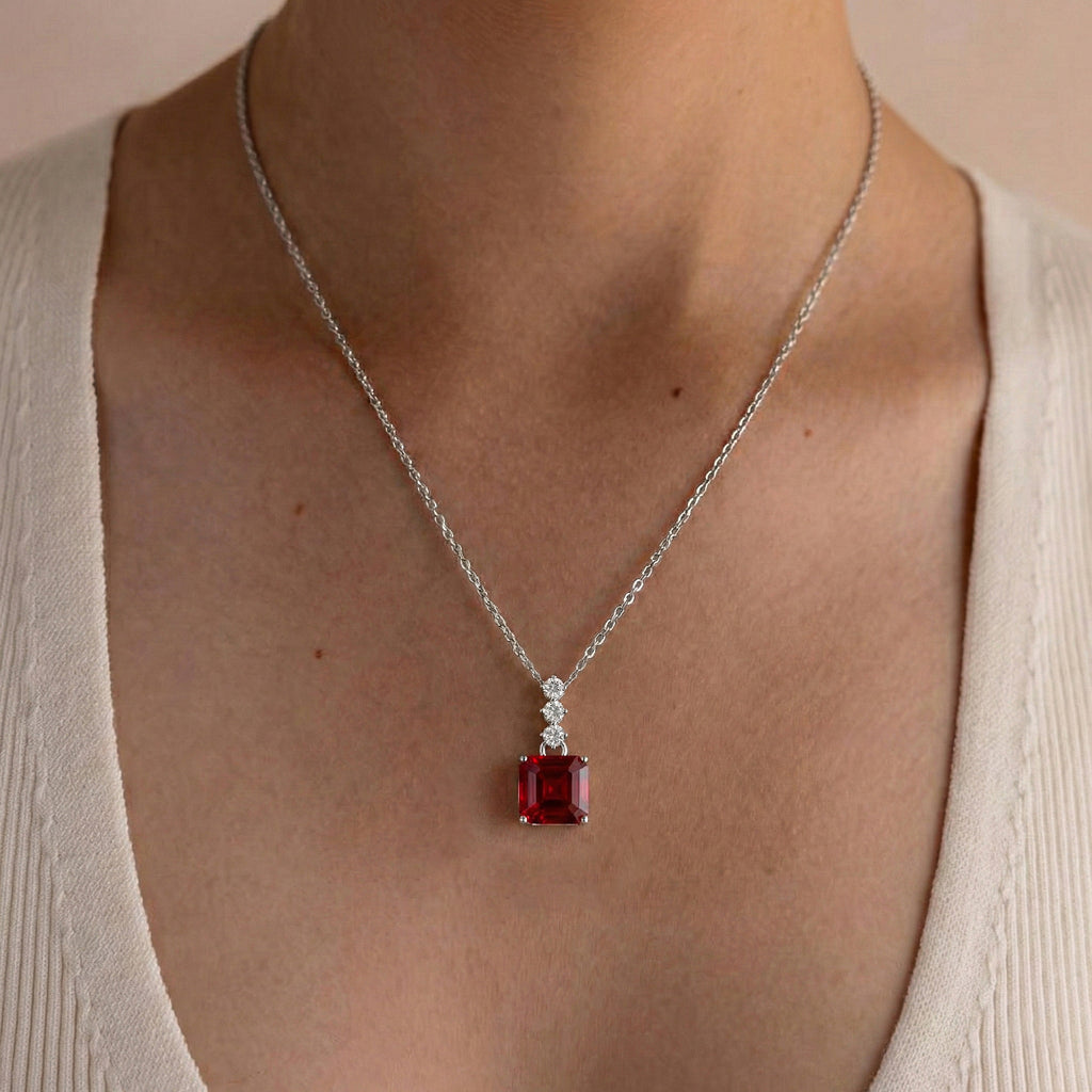 Ruby Octagon Solitaire Pendant Necklace in 925 Sterling Silver 8 MM 2ct