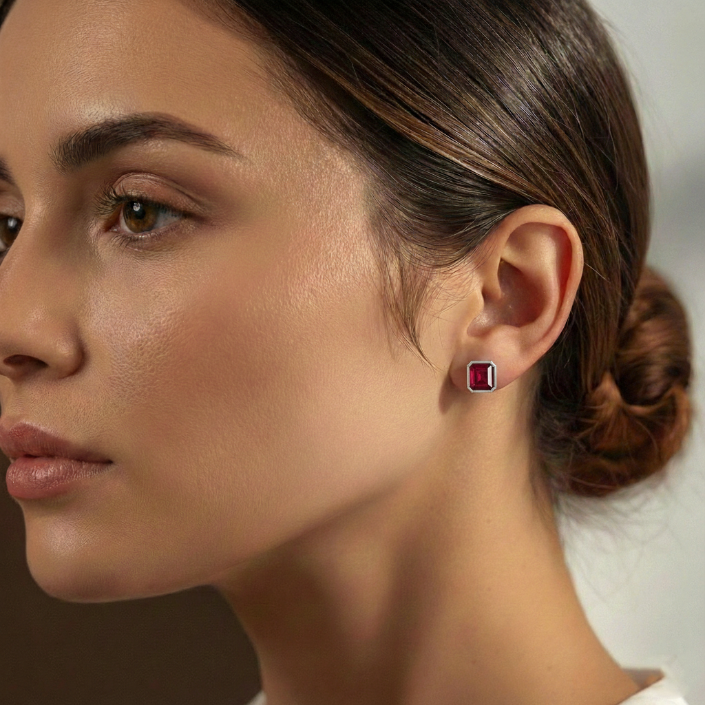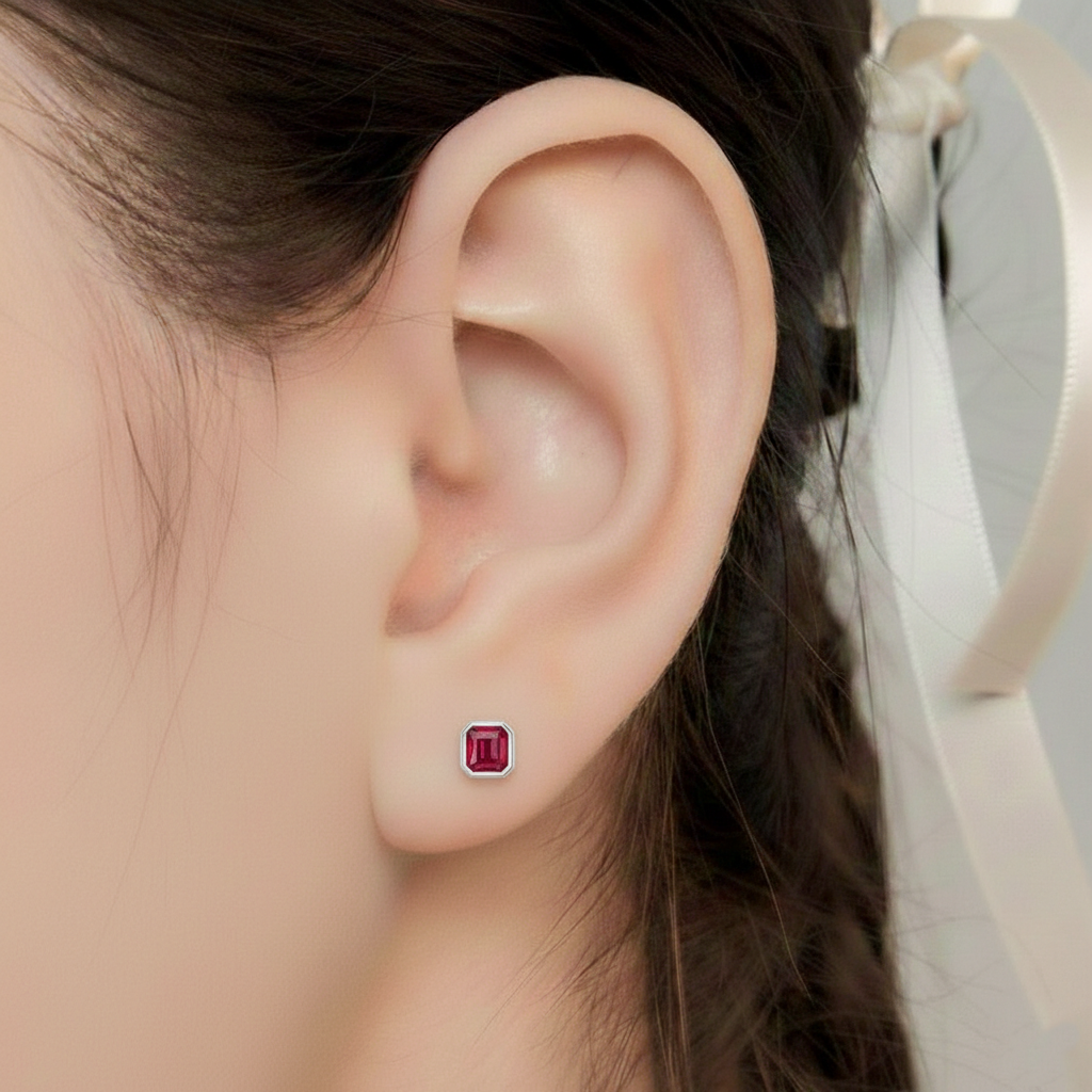 Ruby Octagon Stud Earring in 925 Sterling Silver 6MM 2ct.