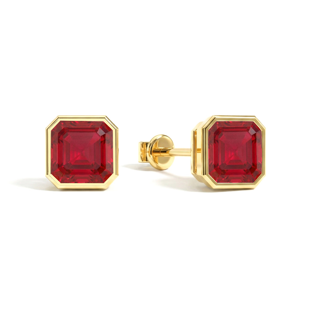 Make a bold statement with these Ruby Octagon Stud Earrings in 925 Sterling Silver. Featuring 6 MM octagon faceted ruby gemstones with an approximate 2 carat total weight, these ruby stud earrings showcase a deep red sparkle that symbolizes passion and elegance. With an approximate size of 7.71 x 7.70 MM and a weight of 1.80 GM, these classic ruby earrings are perfect for everyday wear or adding a luxurious gemstone touch.