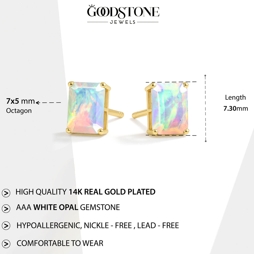 White OpalExperience timeless elegance with these White Opal Octagon Stud Earrings, crafted in premium 925 sterling silver. Featuring a vibrant 7x5 mm white opal cut in a striking hexagon face, each stud offers a refined 0.75-carat brilliance. Lightweight at approximately 0.70 g, they provide comfortable all-day wear. Perfect for adding a touch of luxury to any look, these earrings blend classic beauty with modern sophistication. Ideal for gifting or personal style.
