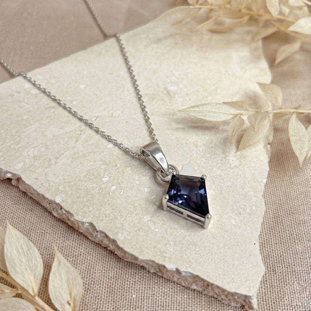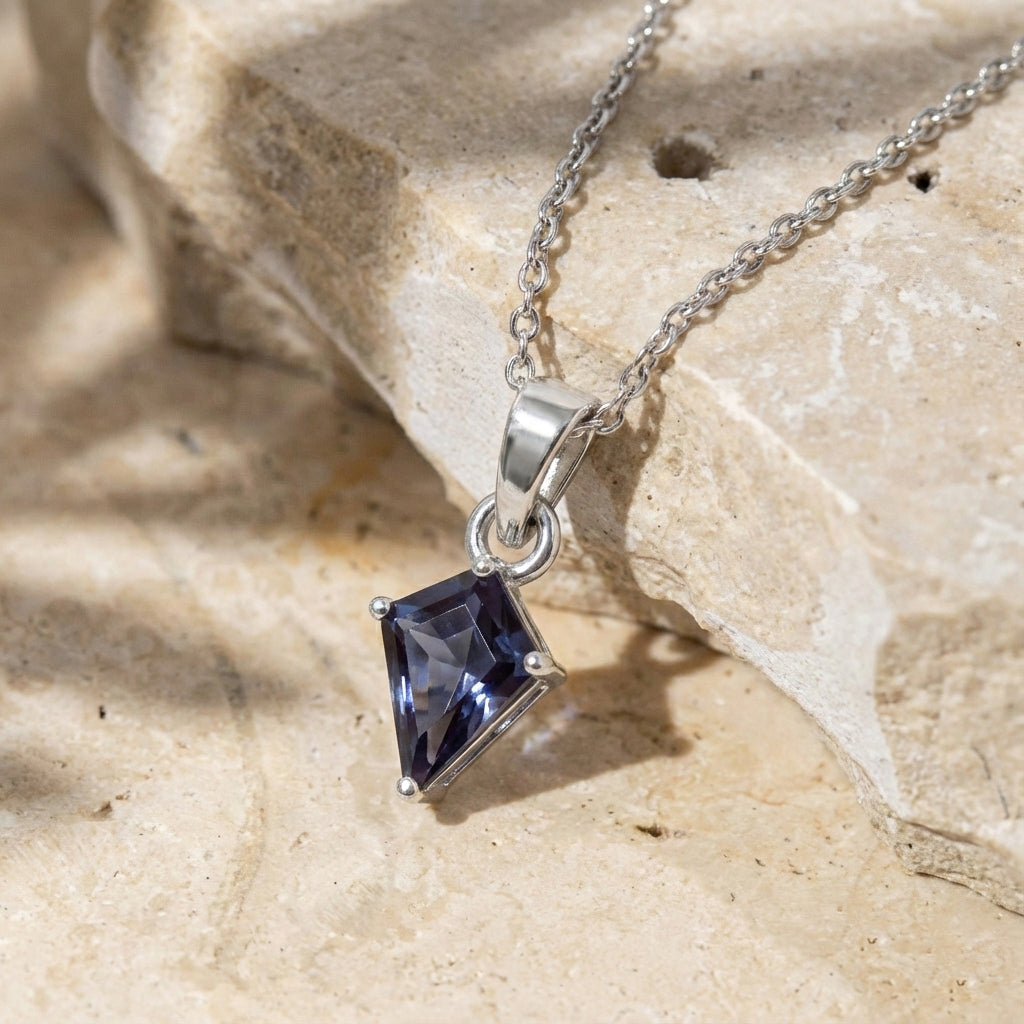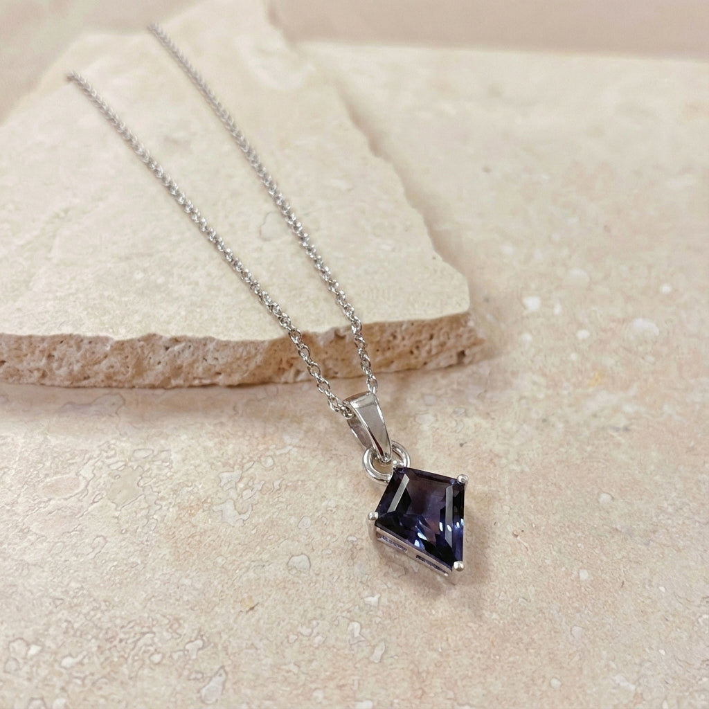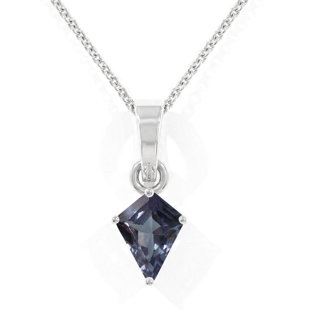 Alexandrite Kite Solitaire Pendant Necklace in 925 Sterling Silver 1.4ct features a striking 9x7mm kite-shaped faceted alexandrite gemstone with captivating color-changing brilliance. The pendant measures 18.20 x 7.40mm and hangs elegantly on a 16” + 2” adjustable cable chain secured with a lobster clasp. Crafted from premium sterling silver and weighing 3.7 grams with the chain, this sophisticated necklace offers timeless elegance, vibrant sparkle, and everyday comfort—perfect for gifting or enhancing any jewelry collection.