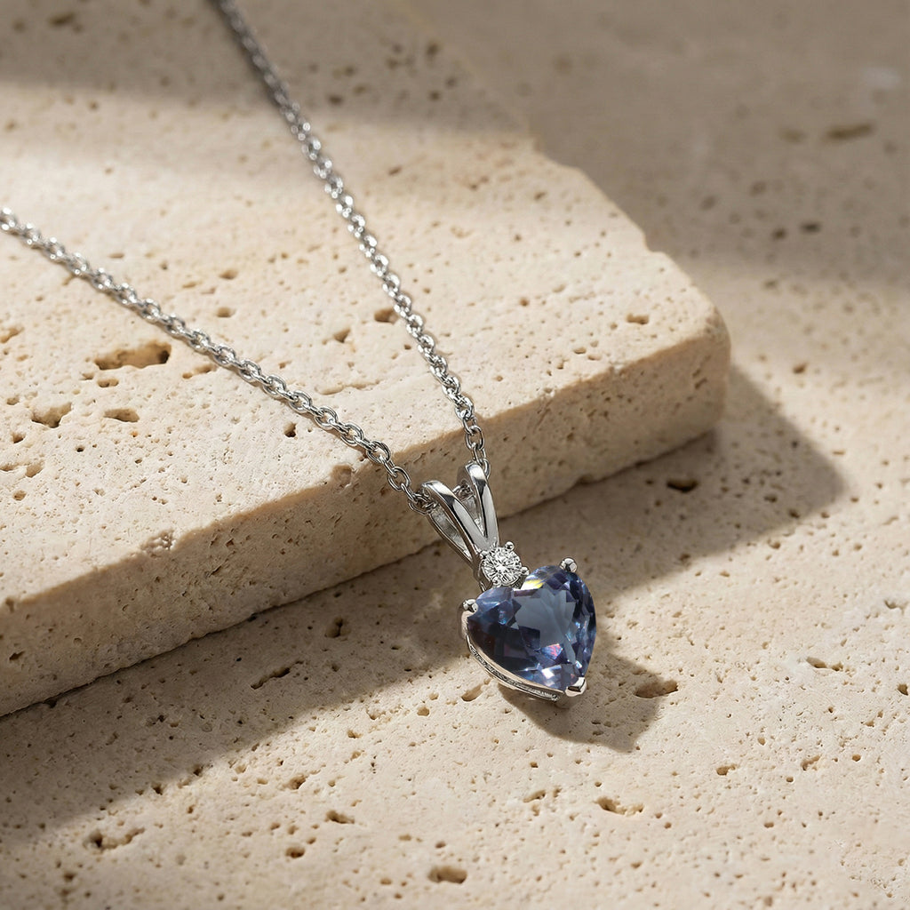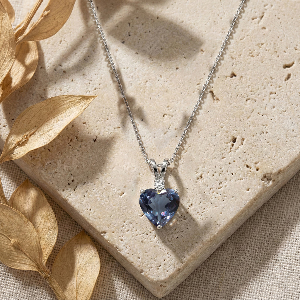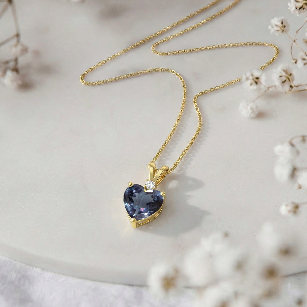 Elevate your elegance with this Alexandrite Heart Pendant Necklace in 925 Sterling Silver. Featuring a 7mm, 1.5ct faceted heart-shaped Alexandrite, this delicate pendant measures 12.5x7mm and hangs on a 16"+2" adjustable cable chain. Lightweight at 3.5g, it’s perfect for everyday wear or special occasions. Celebrate love, beauty, and timeless style with a gemstone that changes color under light—an unforgettable addition to any jewelry collection.