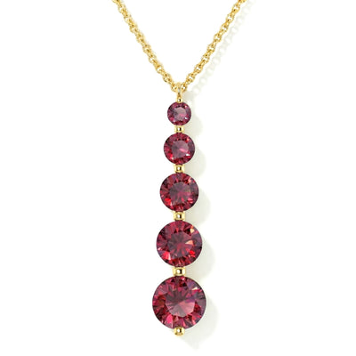 Elevate your elegance with this Ruby Round 5-Stone Bar Pendant Necklace, crafted in yellow gold-plated brass. Featuring five faceted rubies ranging from 3mm to 7mm (total 3.90 carats), the pendant measures 34.76 x 7.30 mm and hangs on a 16"+2" cable chain. Lightweight yet striking at 6.65g, it’s perfect for layering or wearing solo. Ideal as a birthstone jewelry gift or a timeless statement piece, this necklace adds rich, vibrant sparkle to any outfit.
