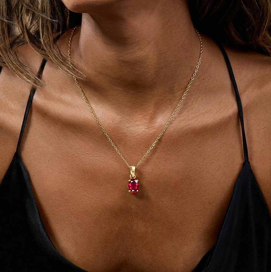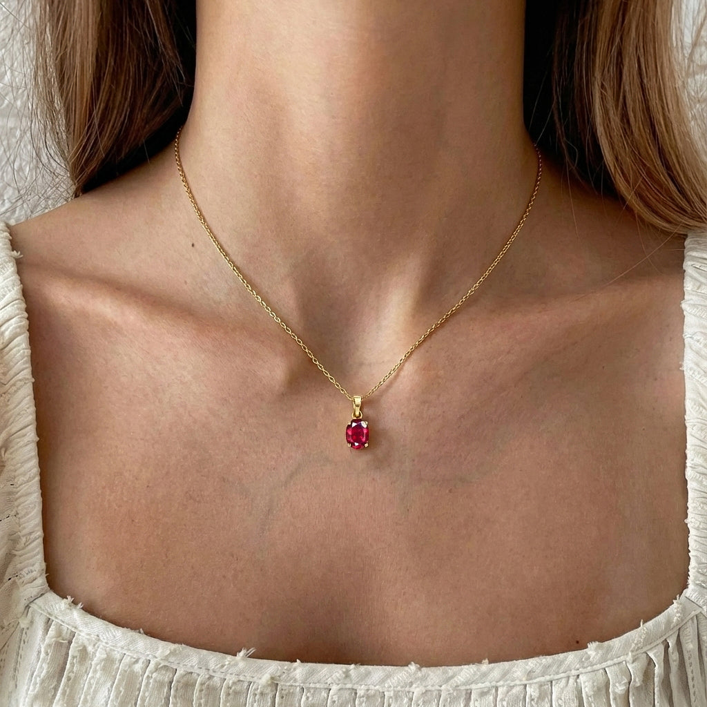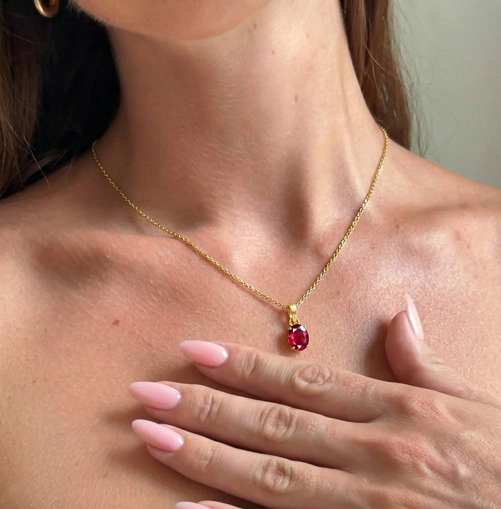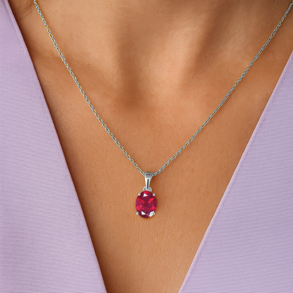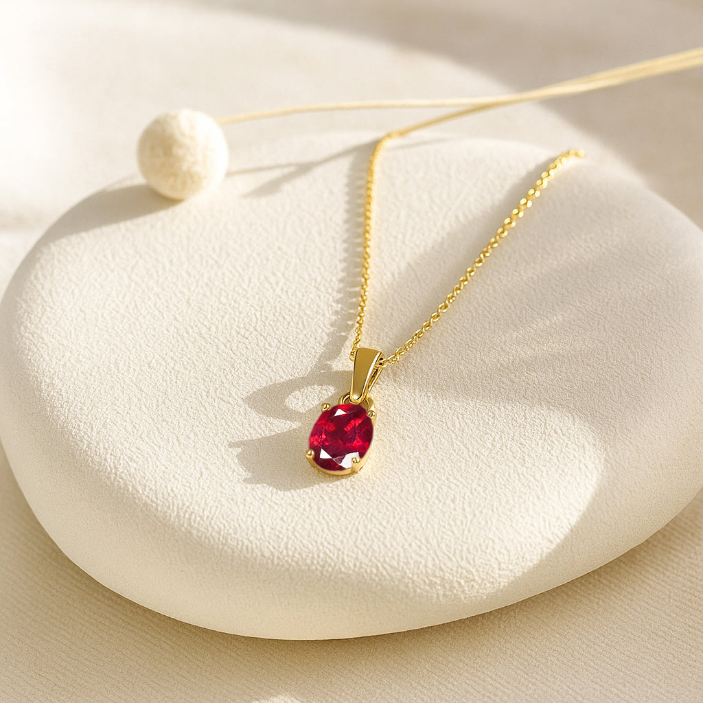 Elevate your elegance with this Ruby solitaire pendant necklace crafted in genuine 925 sterling silver. Featuring a 9x7 mm oval faceted ruby gemstone (approx. 1.4 carat), this classic pendant radiates deep red brilliance and timeless style. The pendant measures 17.70 x 7 mm and comes with a 16” + 2” adjustable sterling silver cable chain secured with a lobster clasp. Perfect for everyday wear, July birthstone gifts, or special occasions.