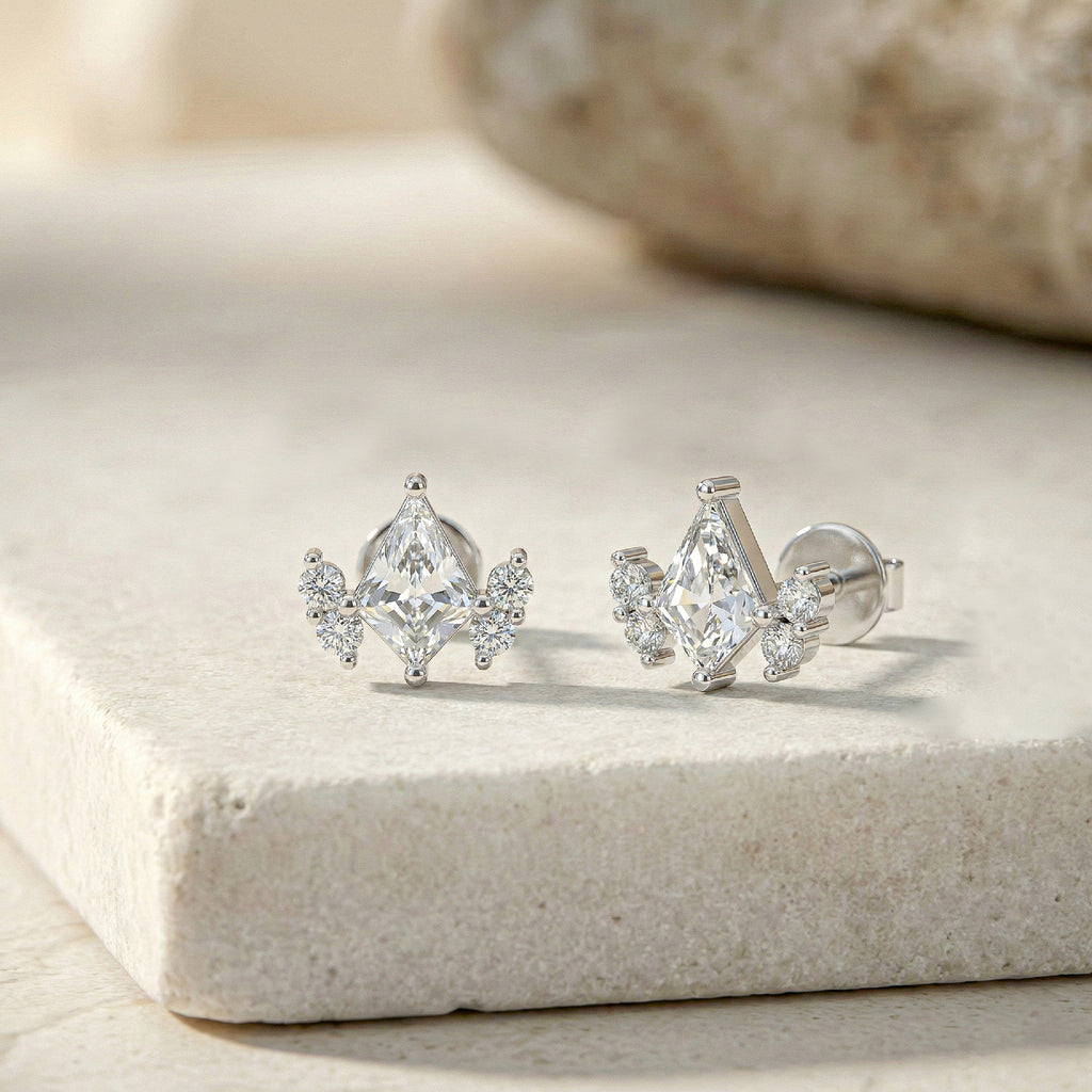 Simulated Diamond Kite Stud Earrings in 925 Sterling Silver 6x4 MM 1ct